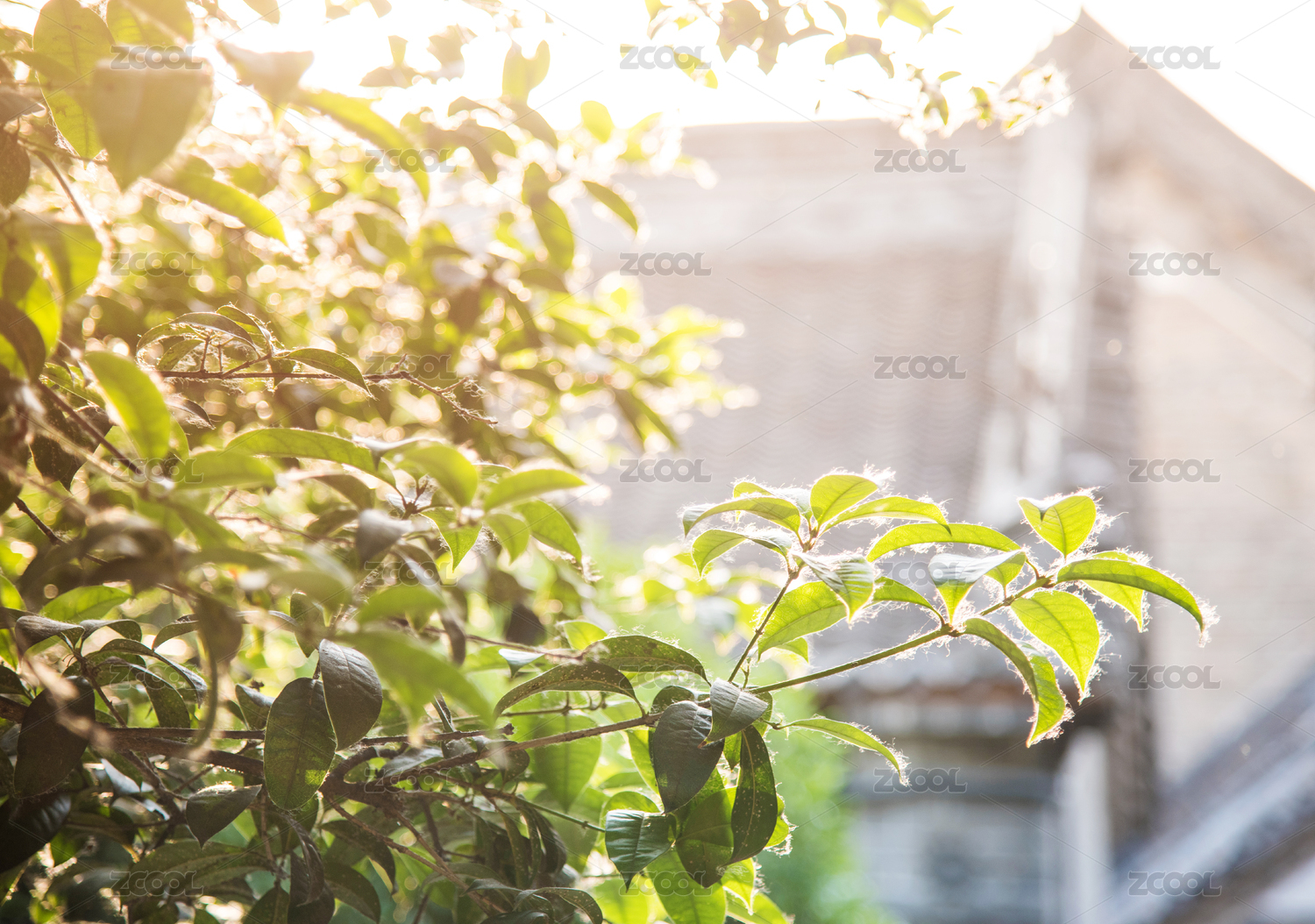 溫暖光線中的樹木枝葉特寫