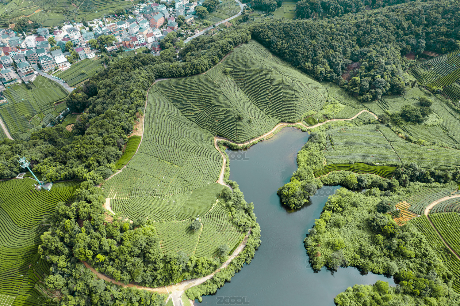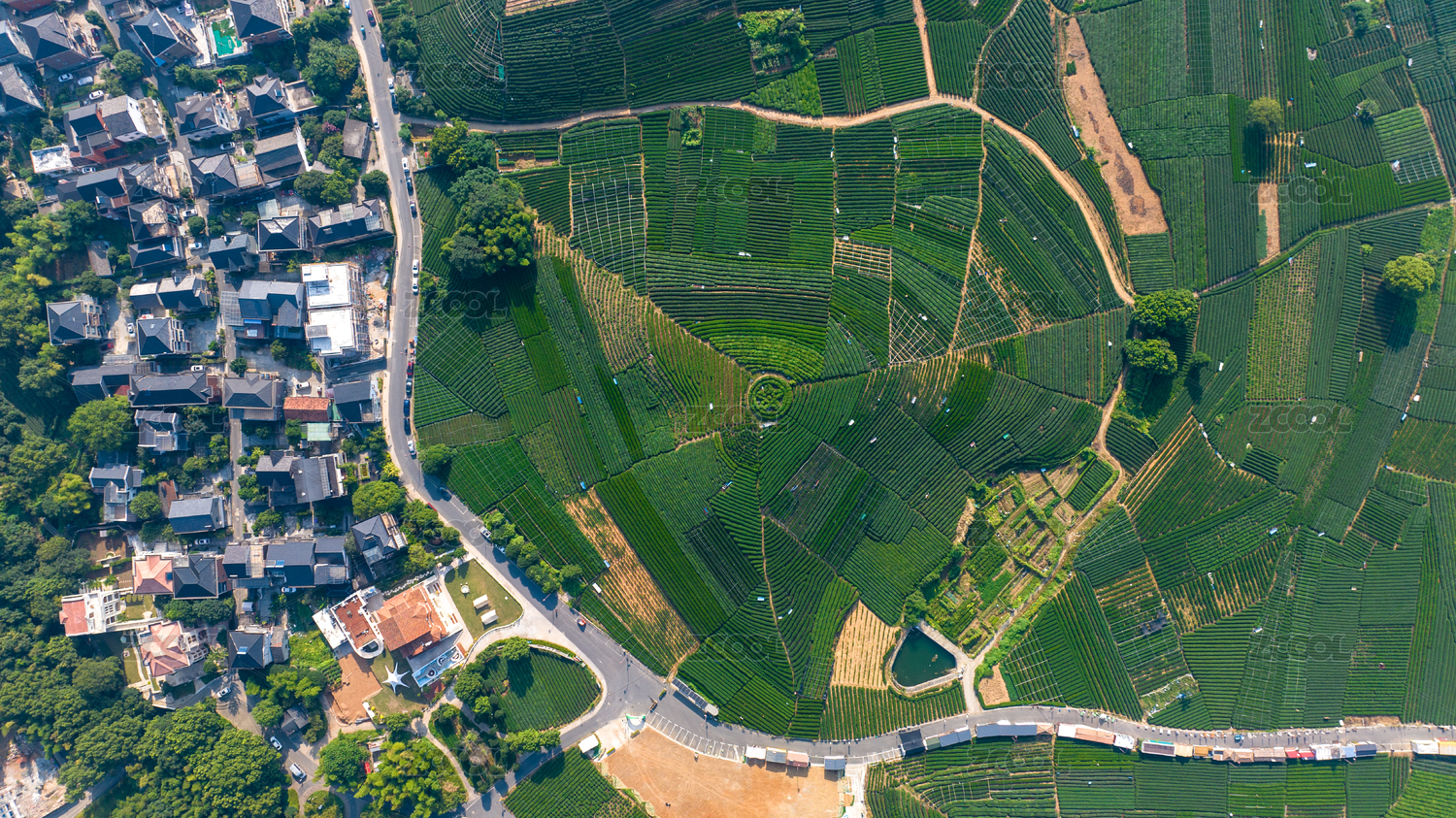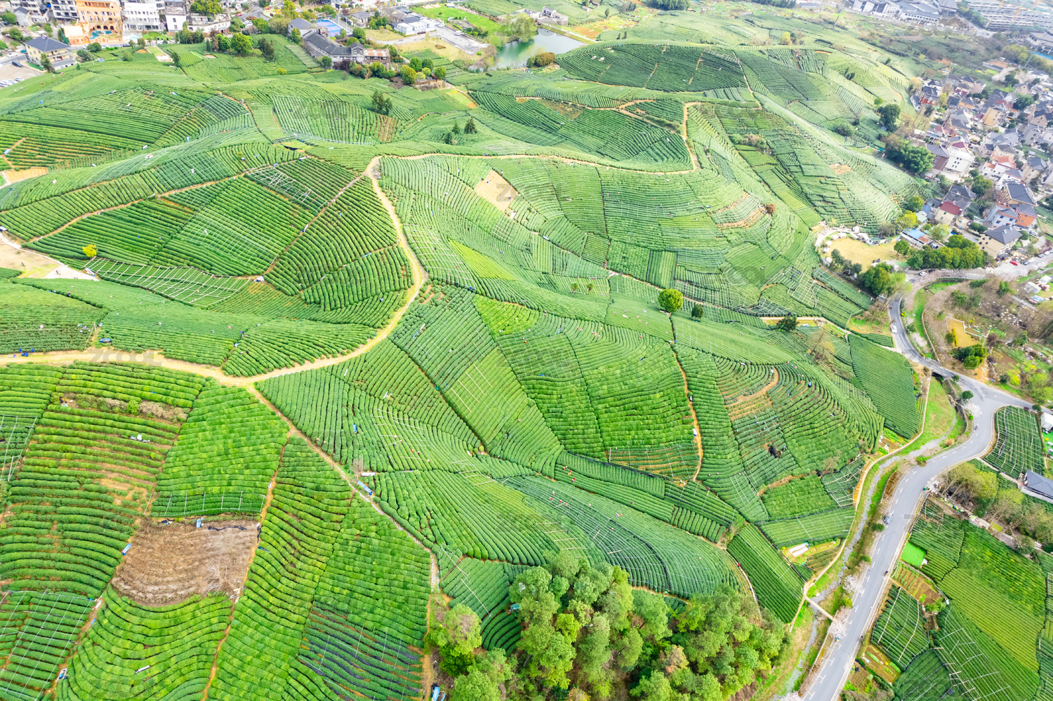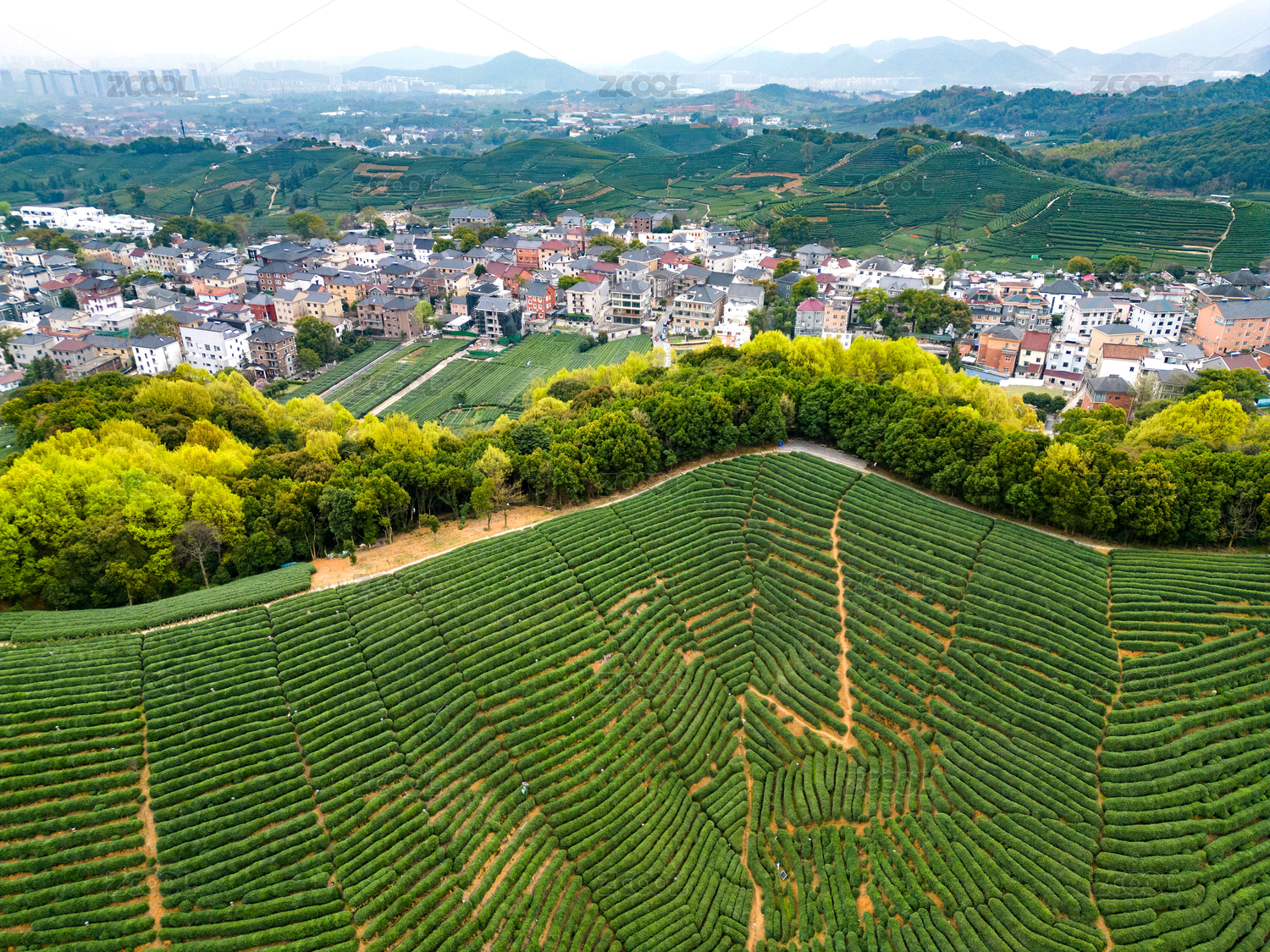 杭州西湖龍井茶園龍塢春天風(fēng)景航拍