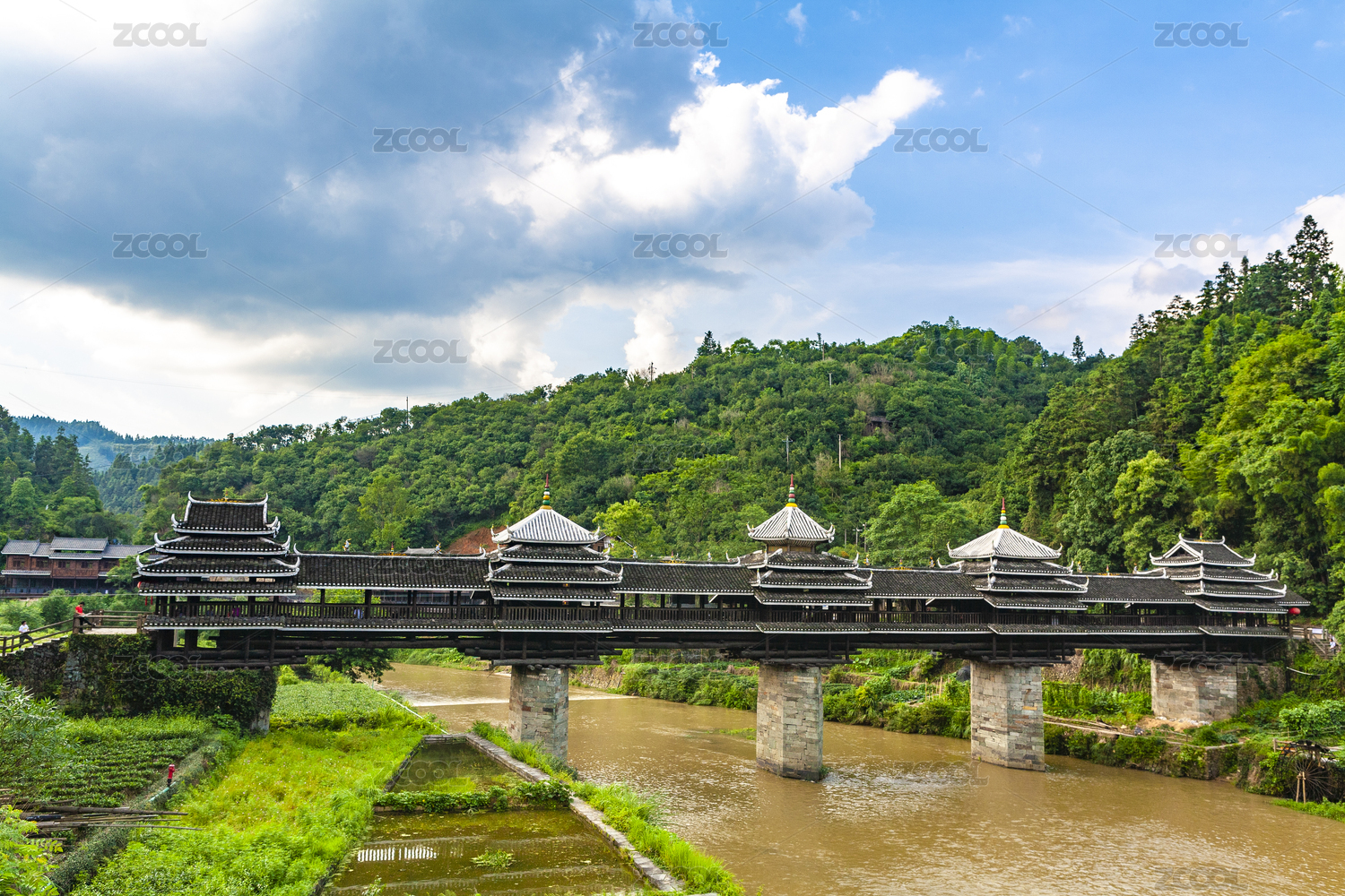 中國廣西柳州三江的程陽八寨的古橋程陽風(fēng)雨橋