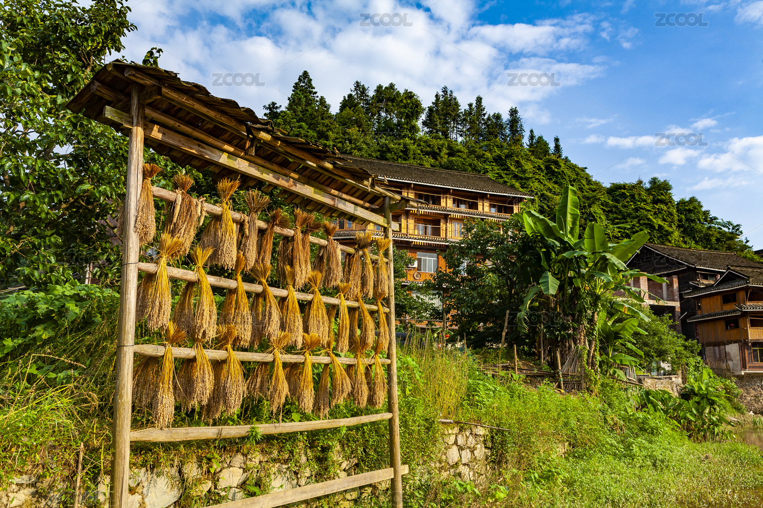 中國廣西柳州三江縣的侗族寨子程陽八寨的田園風(fēng)