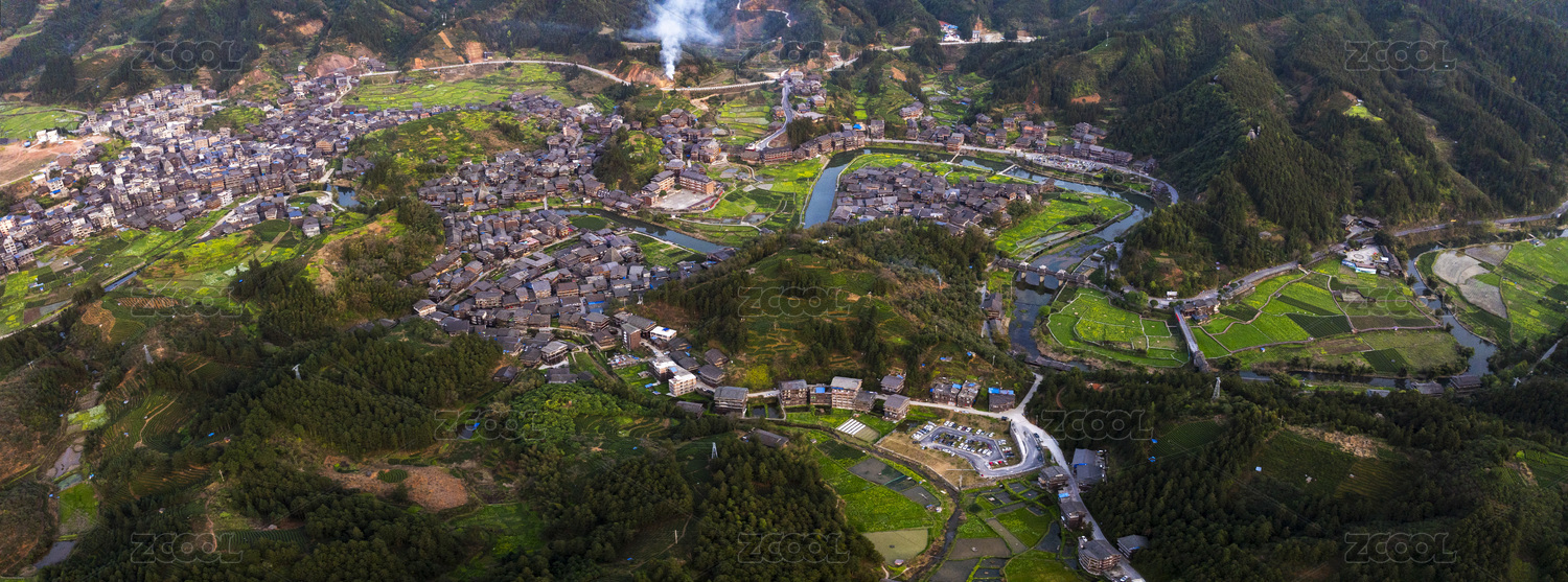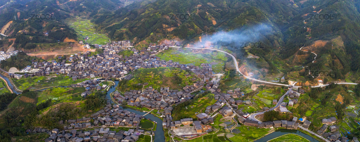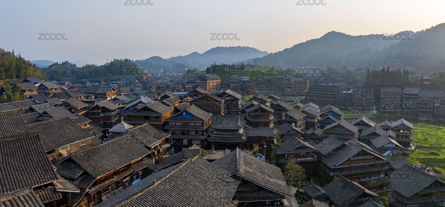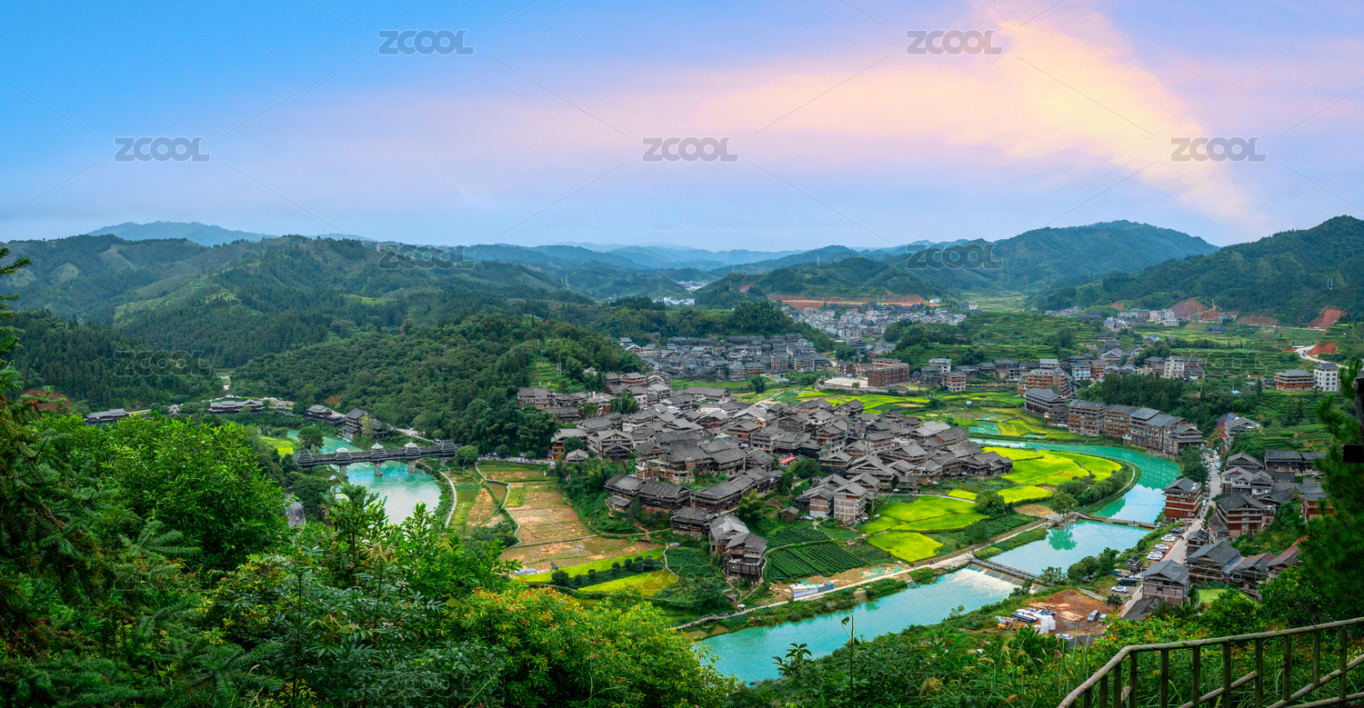中國廣西柳州三江的程陽八寨老建筑村落全貌