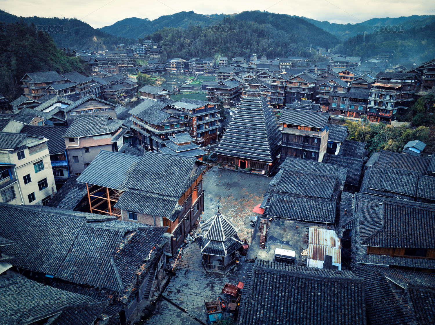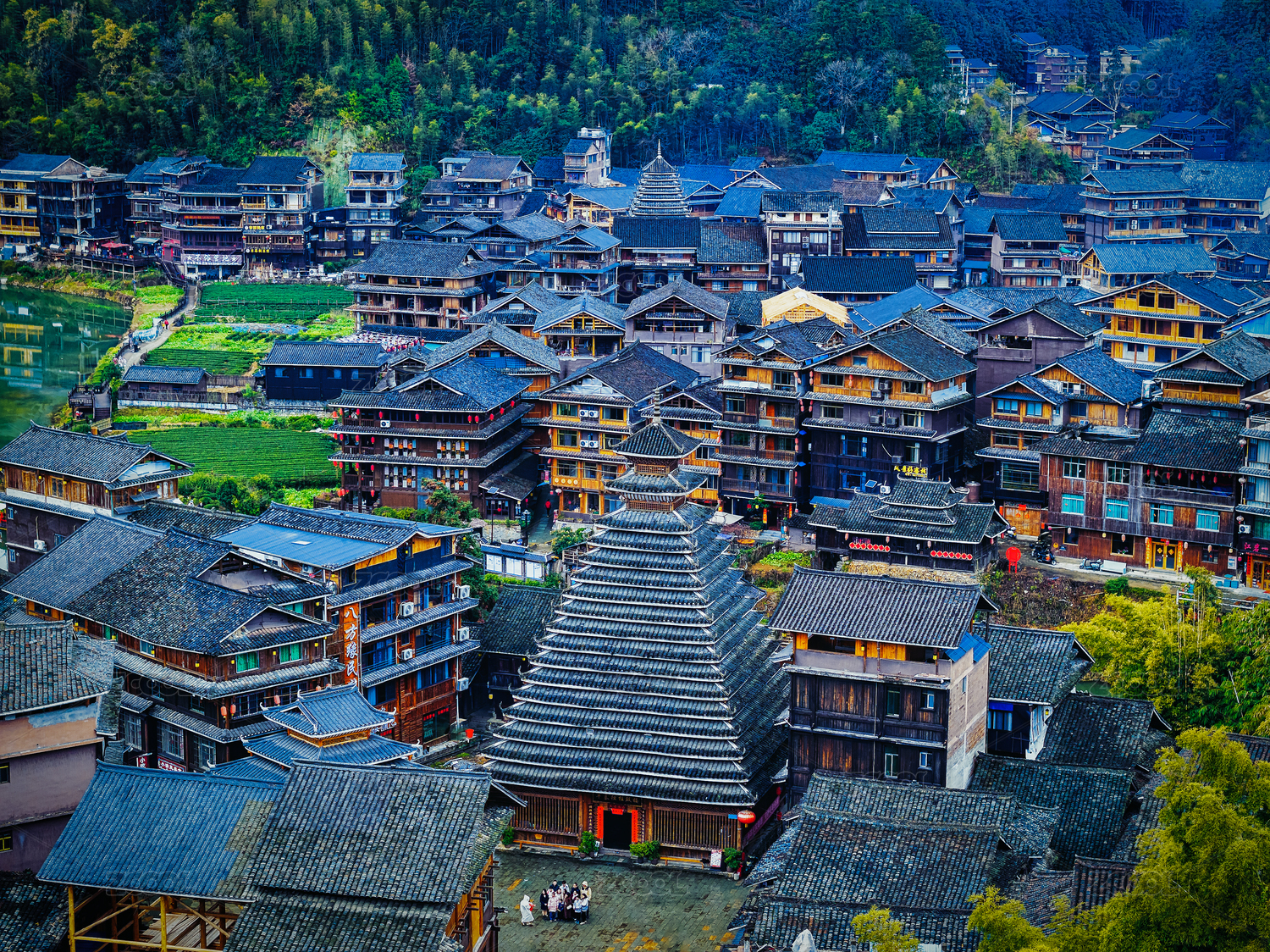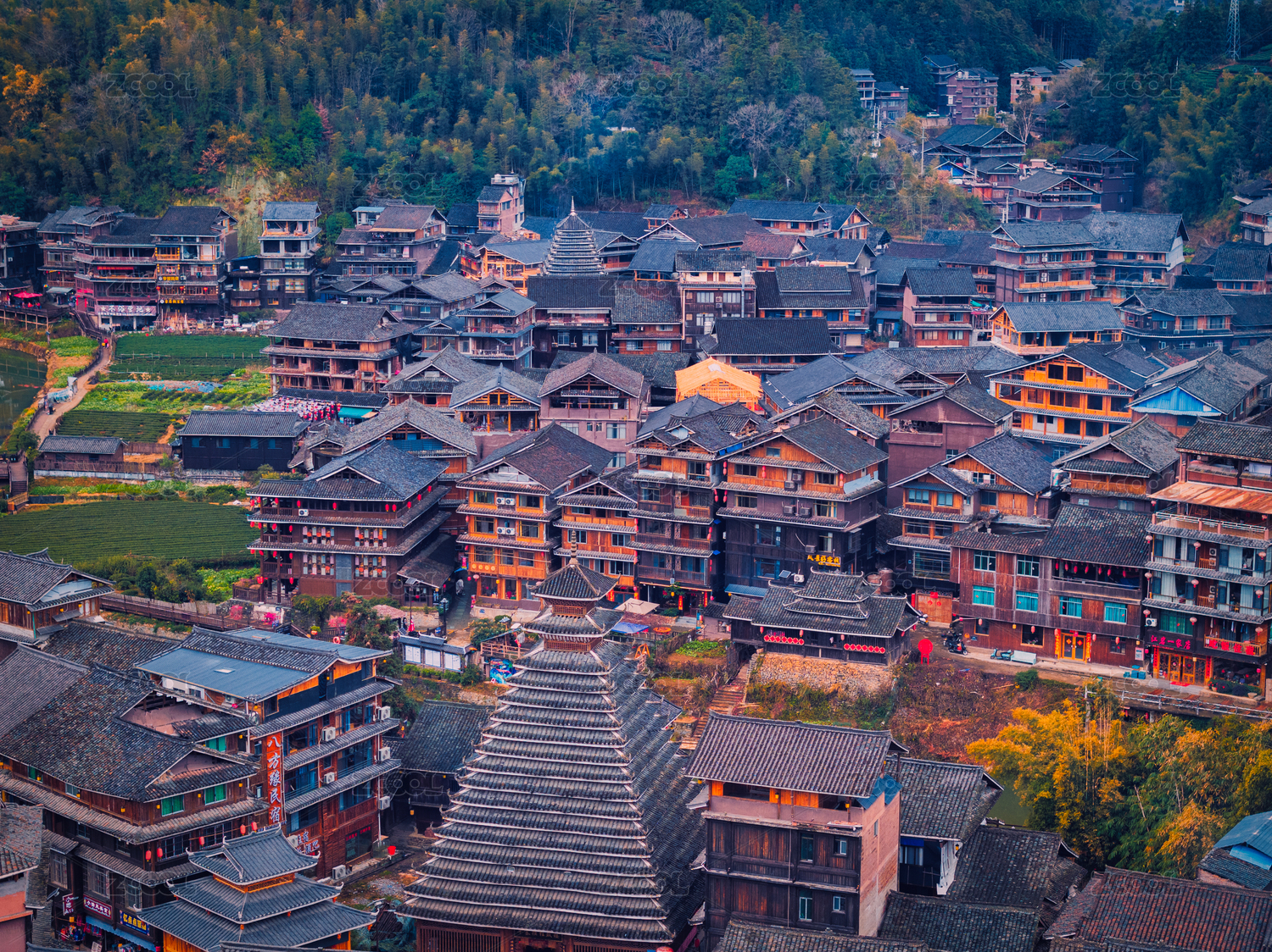 中國廣西柳州三江的程陽八寨老建筑村落全貌