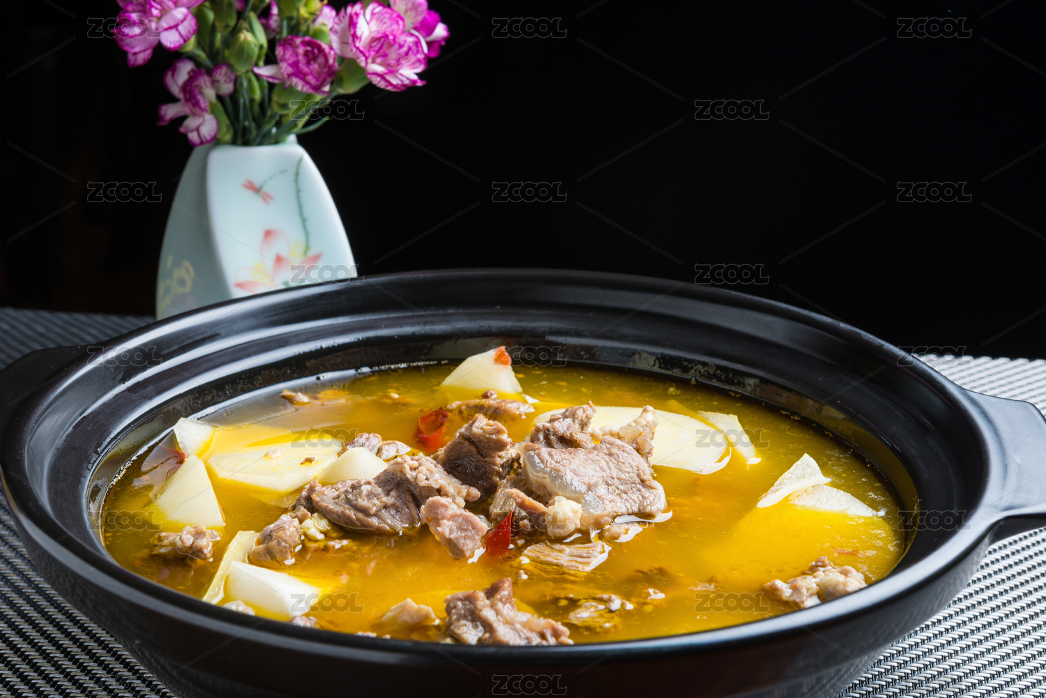 餐桌上砂鍋燉的滋補(bǔ)羊肉湯