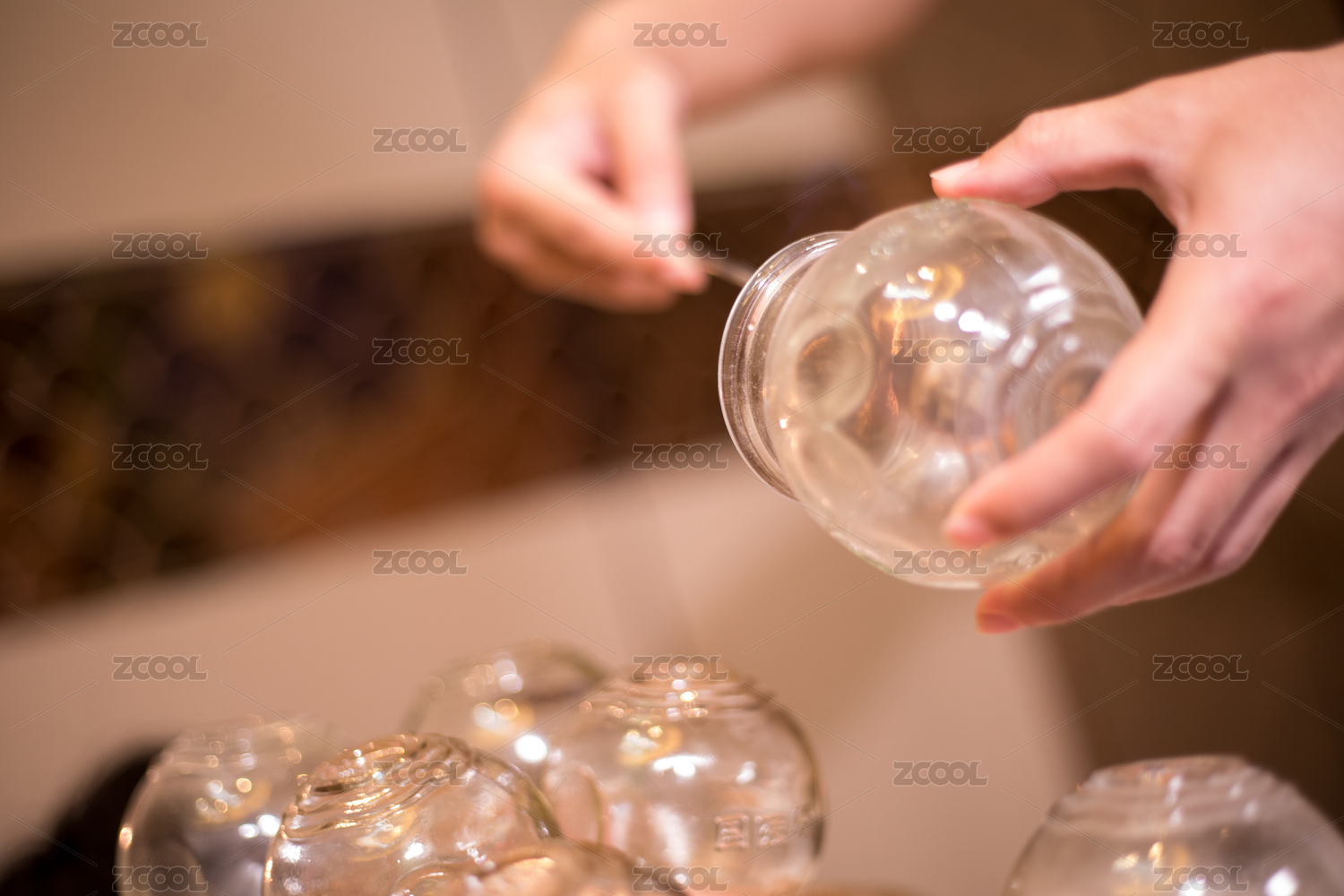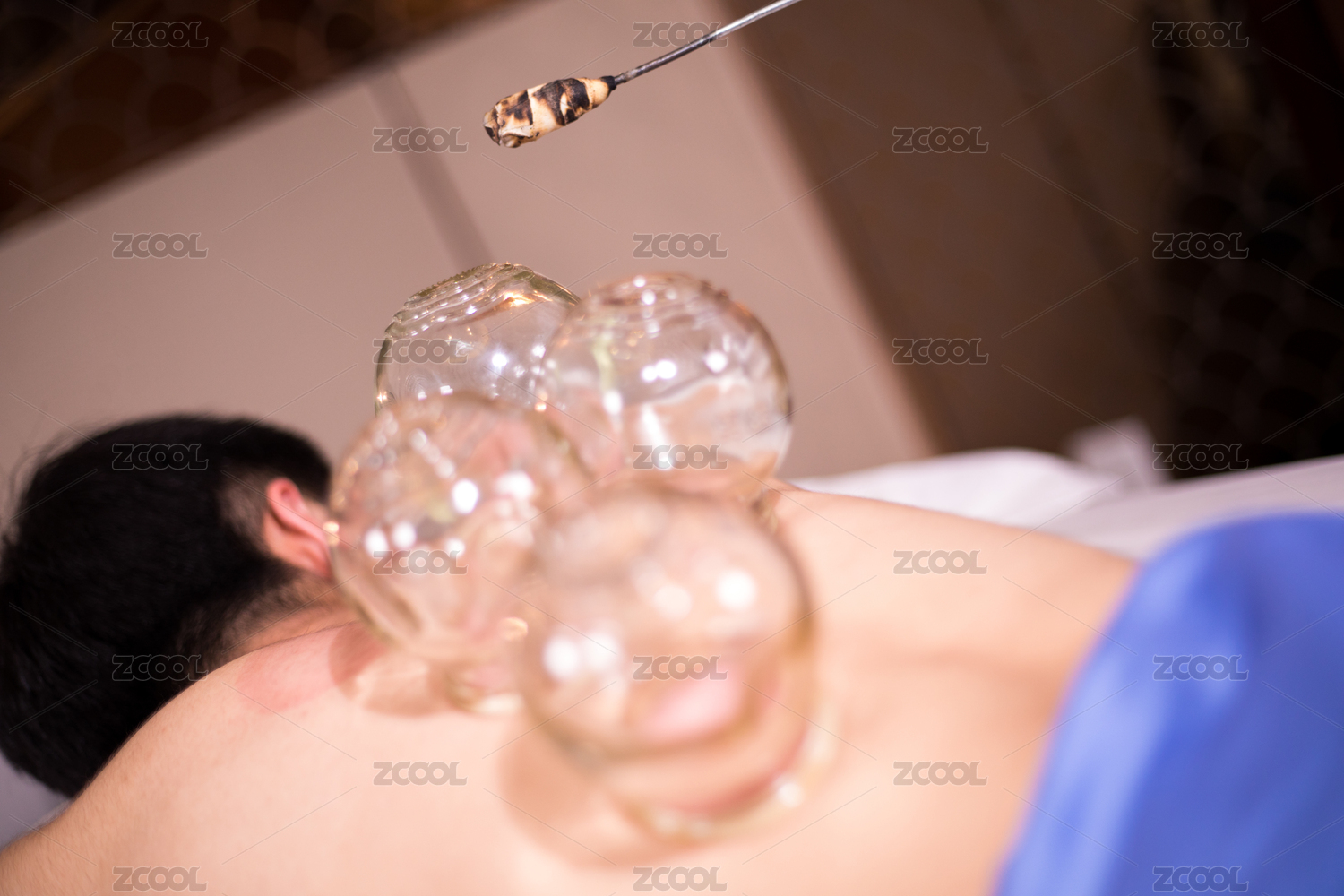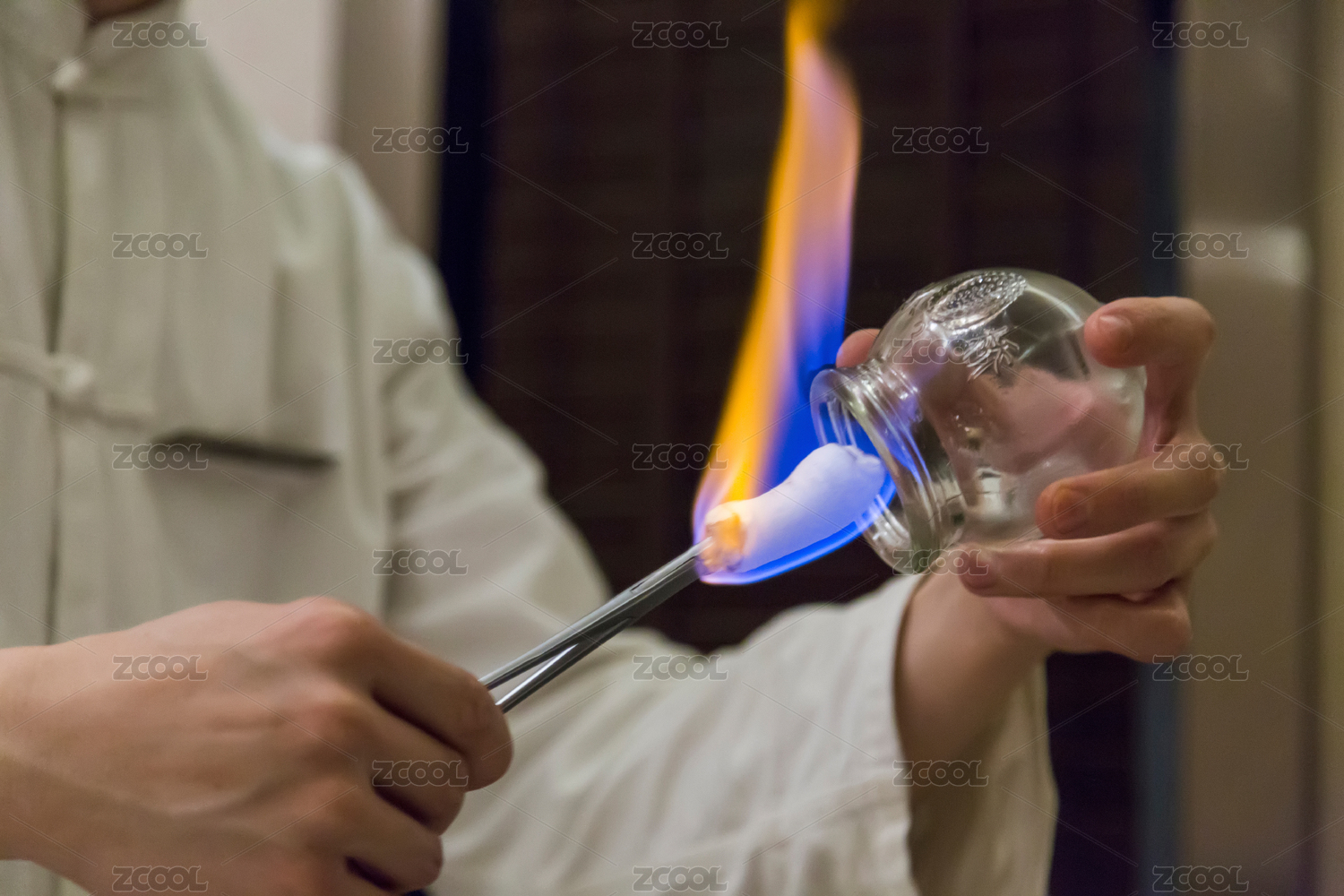 技師在用酒精放在火罐里拔火罐
