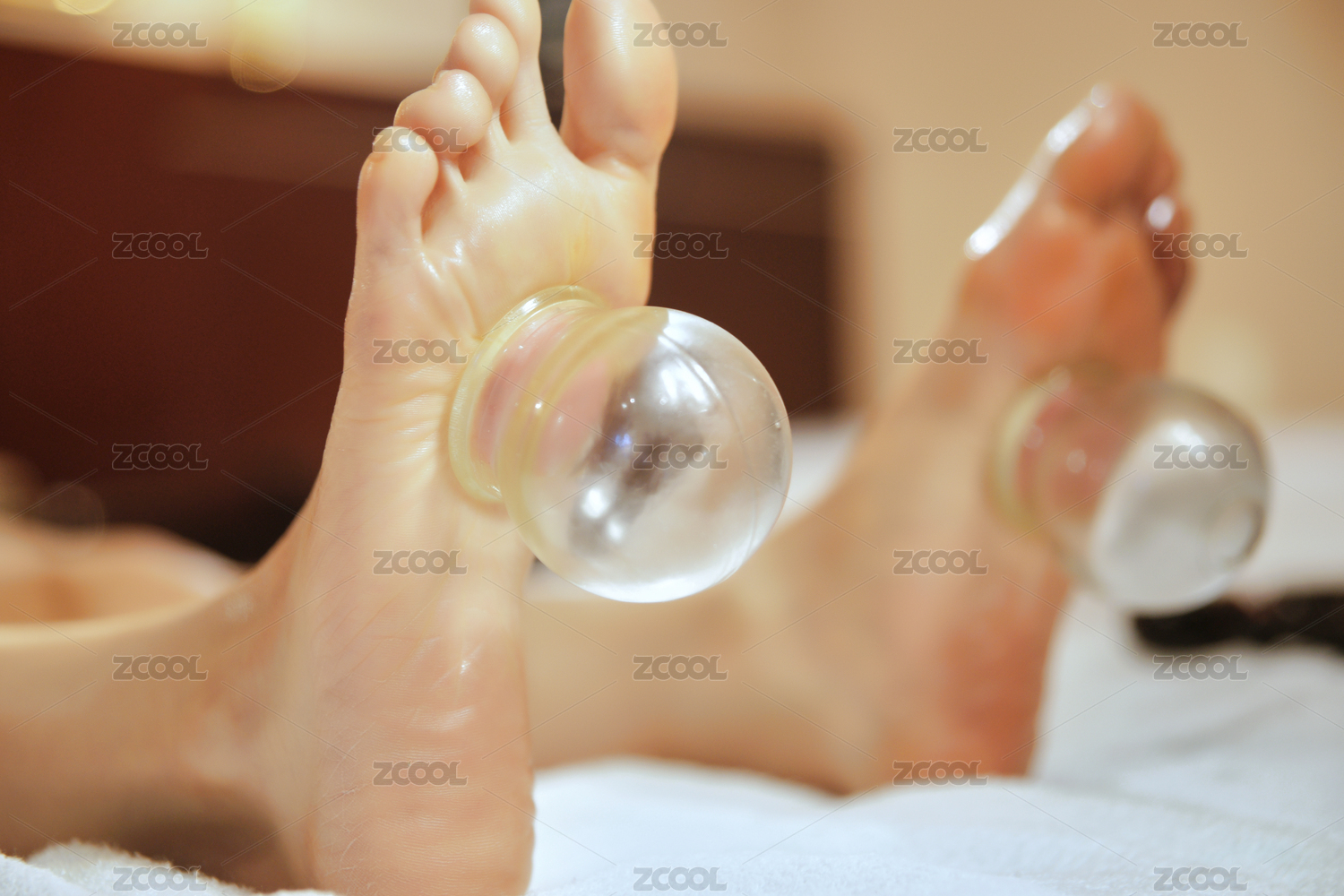 專業(yè)的足療技師為顧客做足底火罐