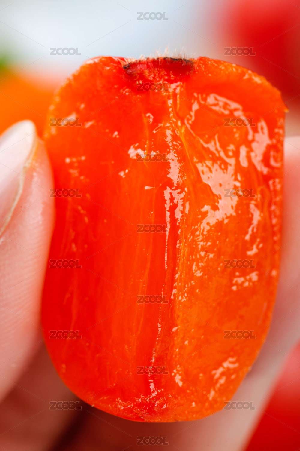 手上拿著一塊火罐柿子