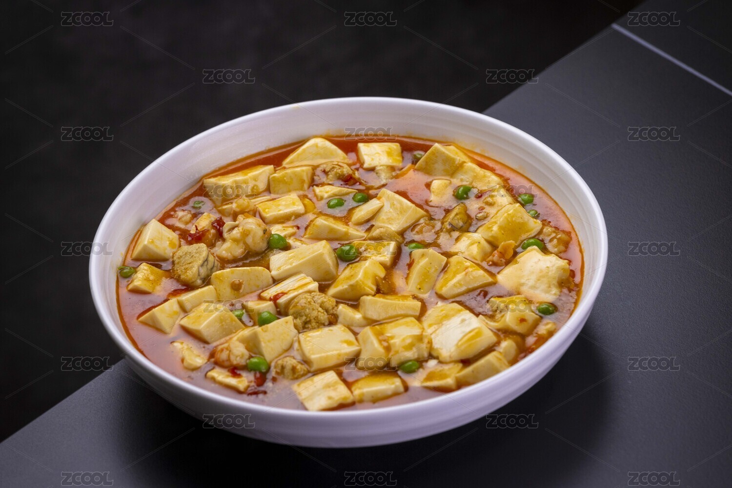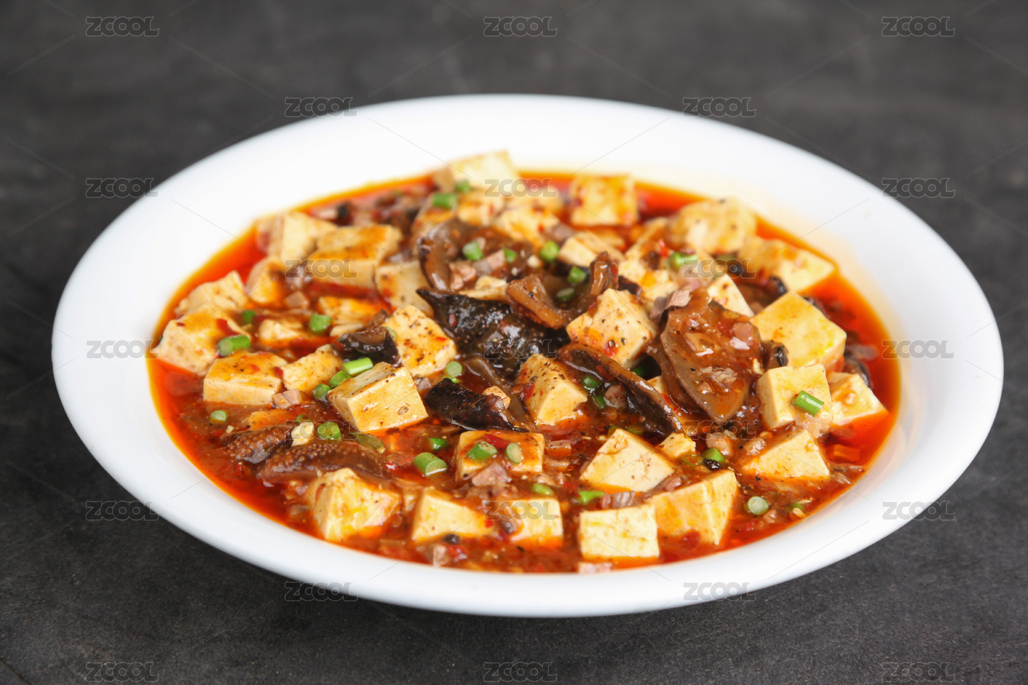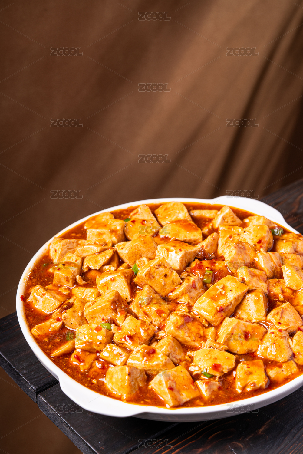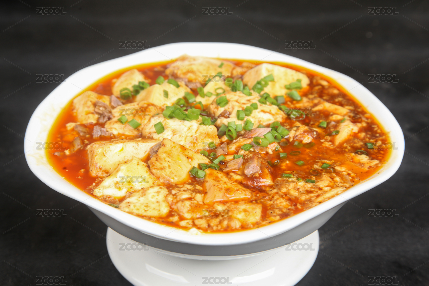 瓷碗里色彩誘人的紅燒麻辣豆腐