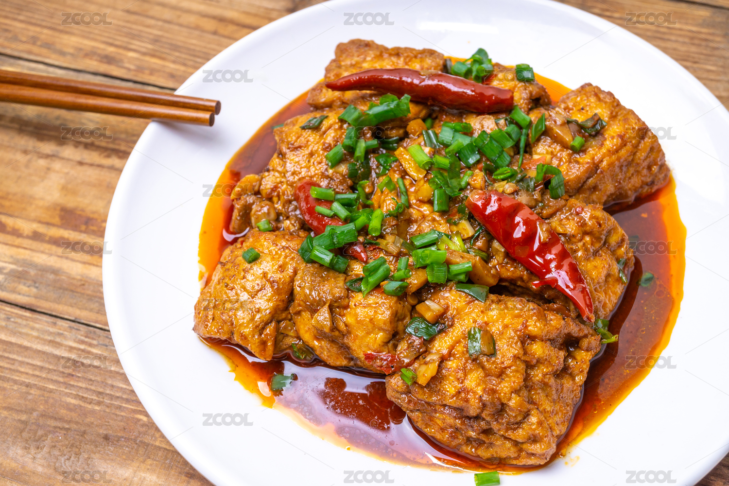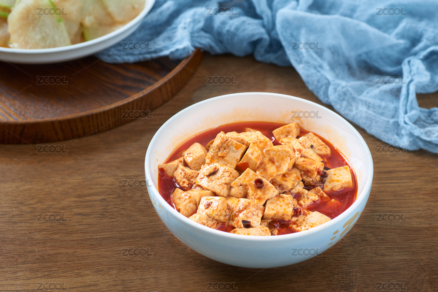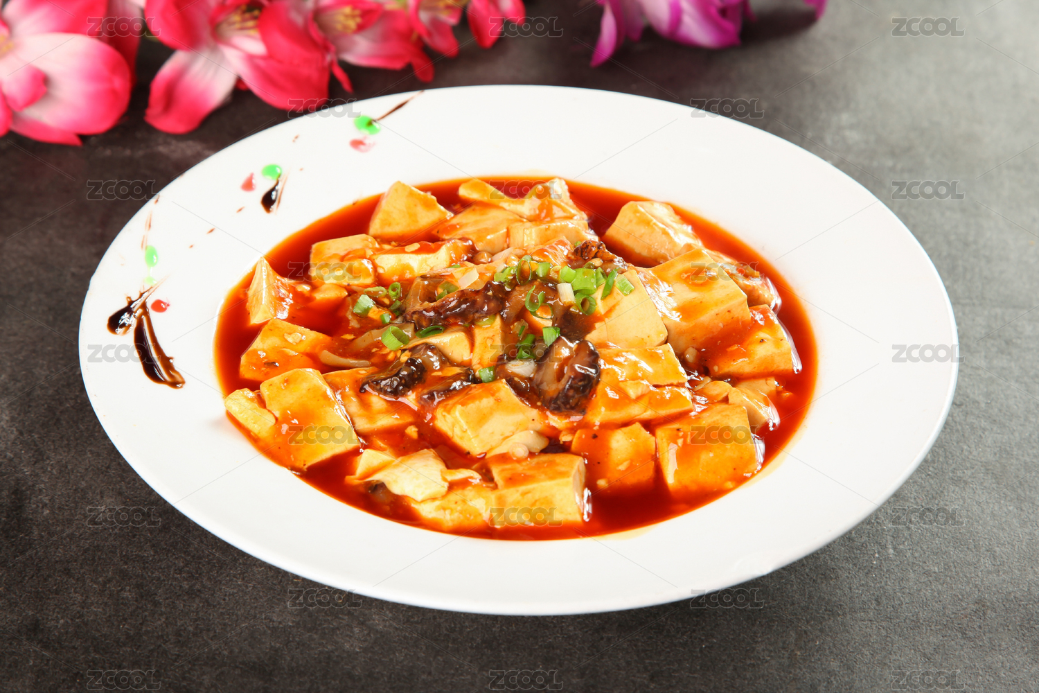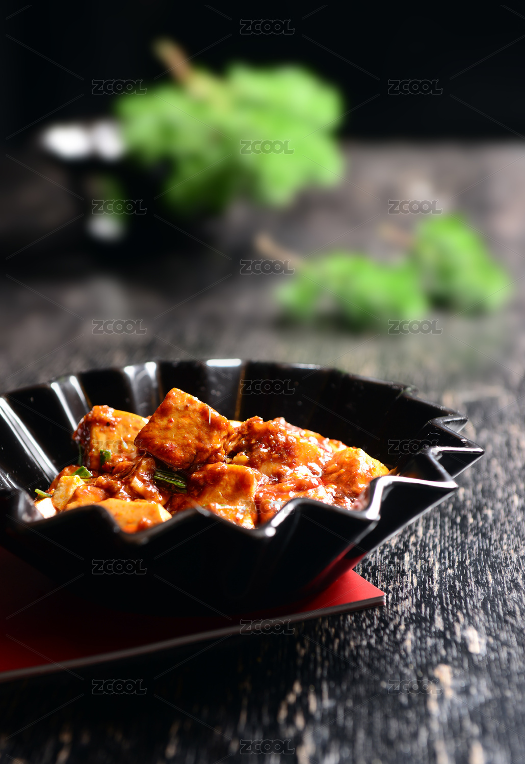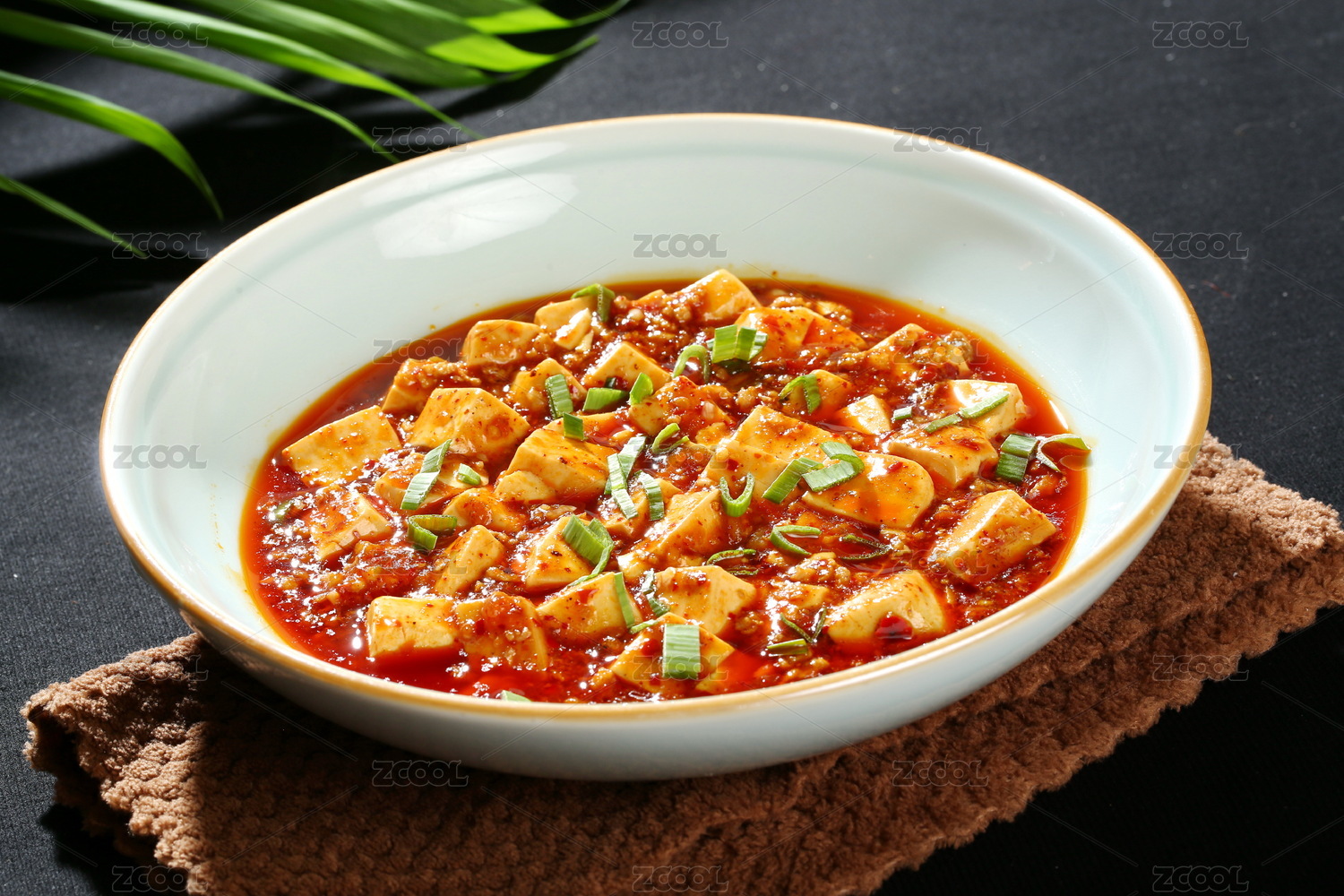 瓷碗里色彩誘人的紅燒麻辣豆腐