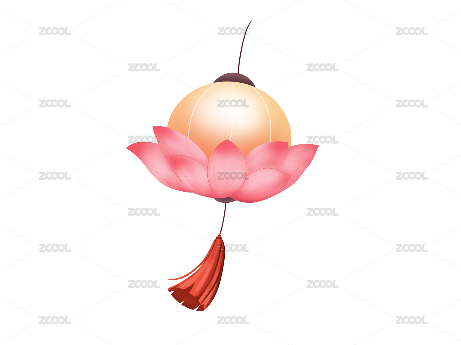 橙色圓形荷花燈元素