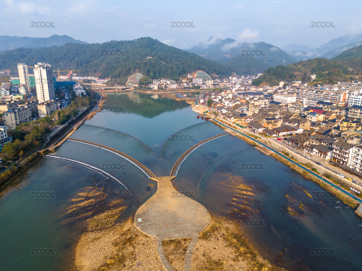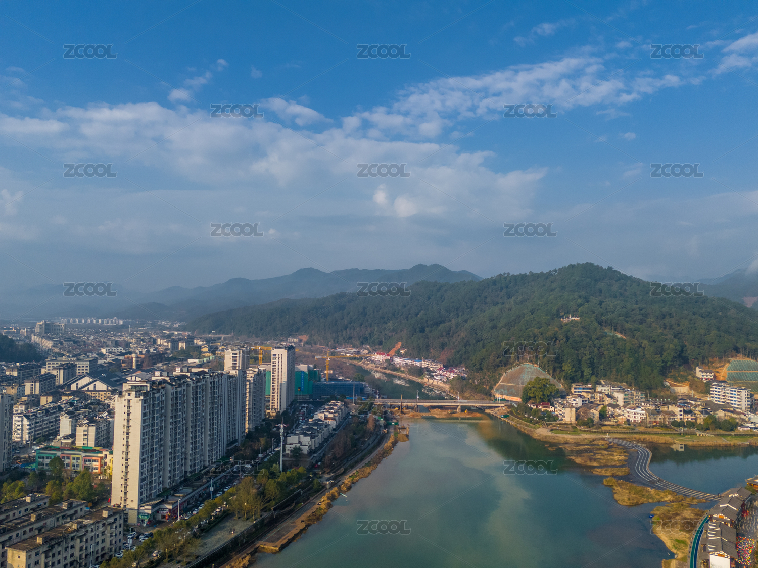 浙江省麗水市龍泉市城市河流景觀航拍圖