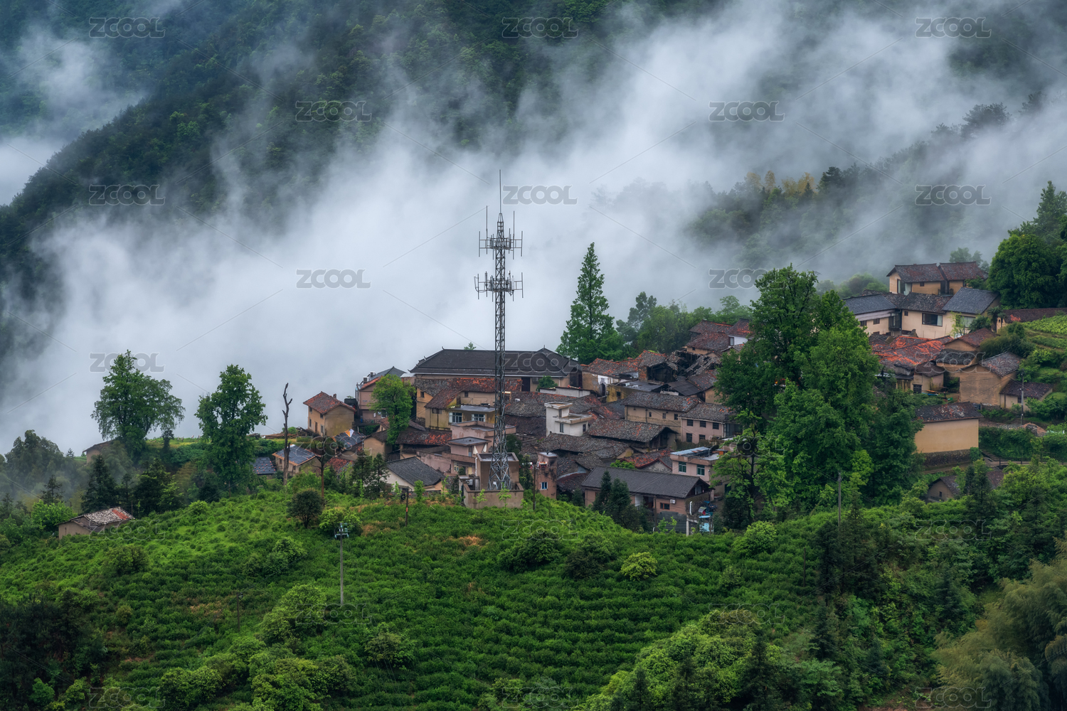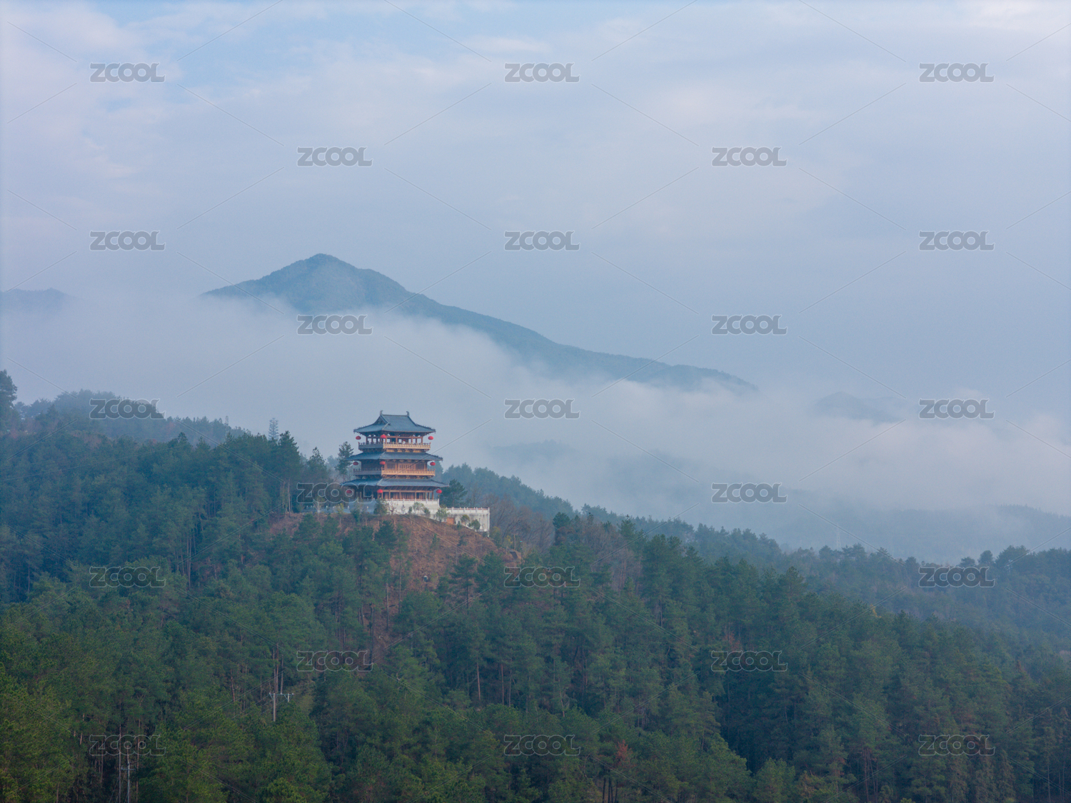 浙江省麗水市龍泉市云霧繚繞的山間古塔