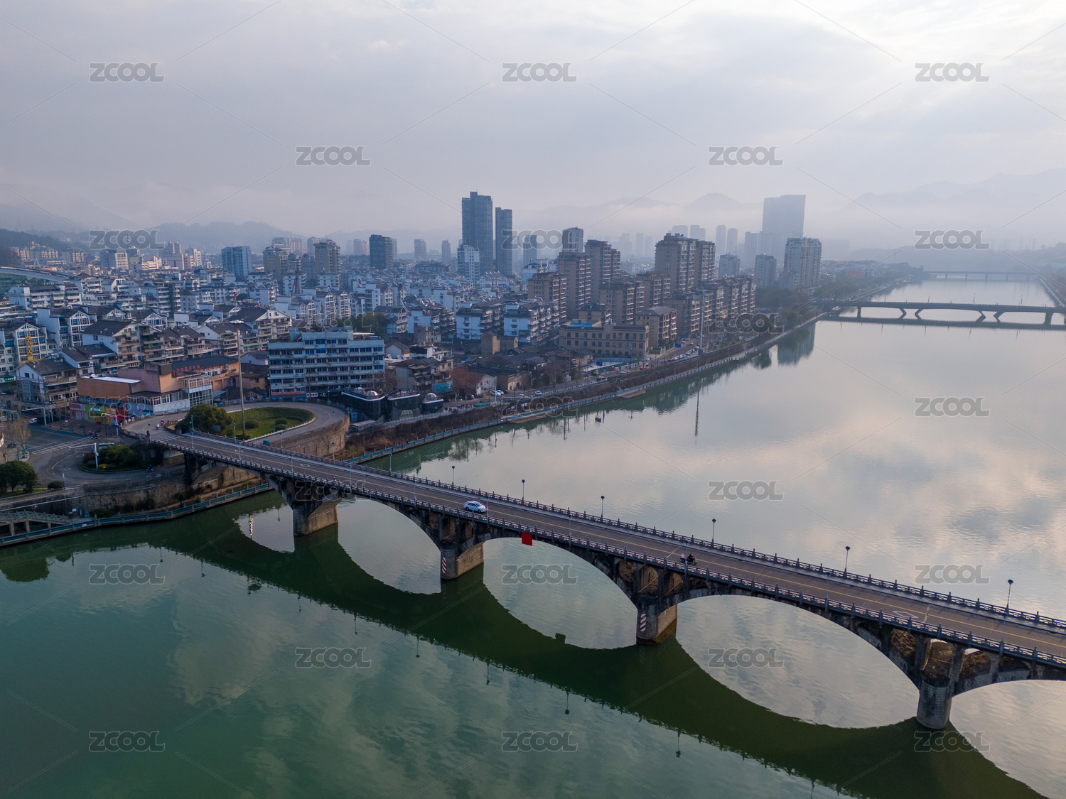 浙江省麗水市龍泉市城市河流上的拱橋景觀
