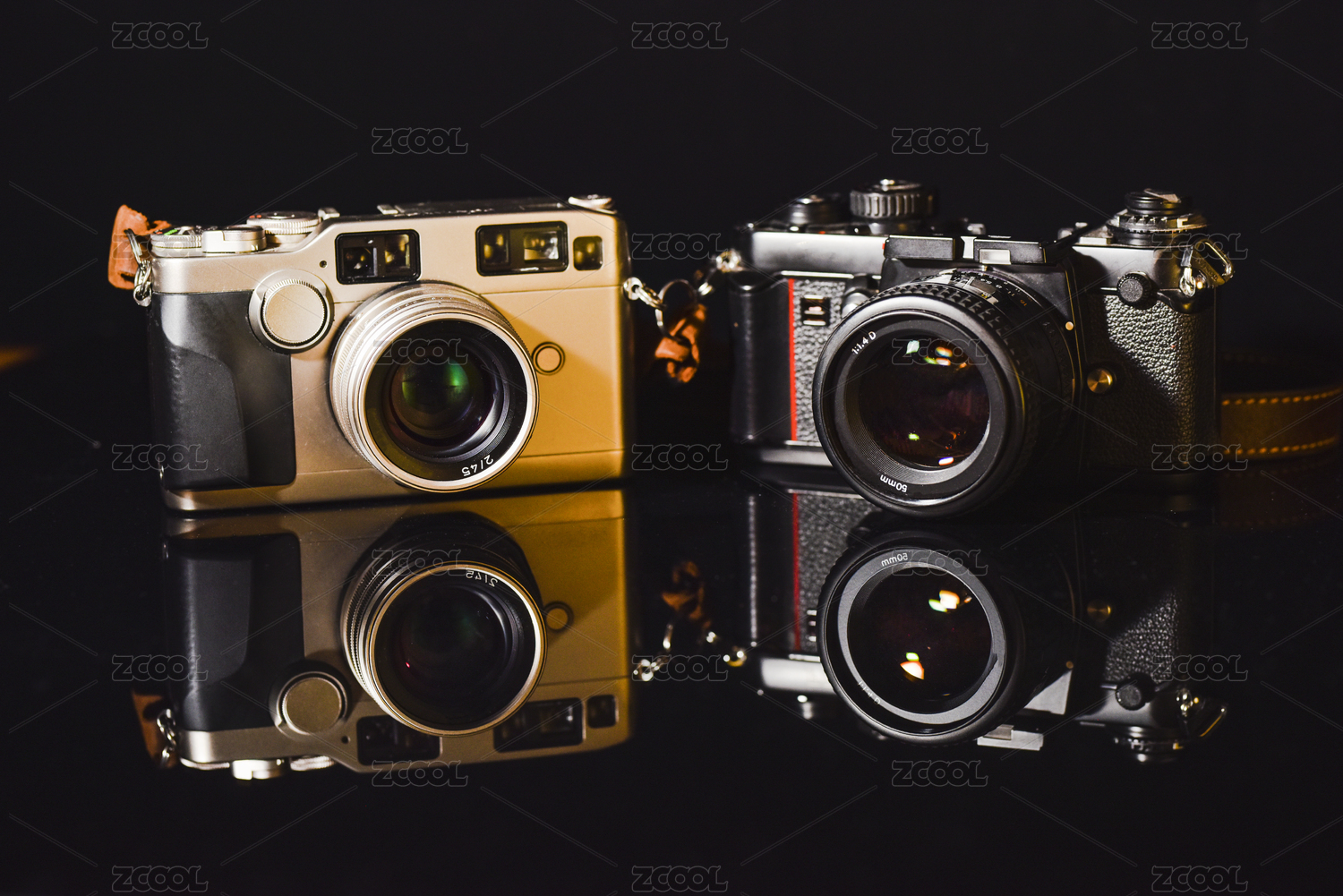 鏡面上的旁軸膠片相機(jī)和膠片單反相機(jī)