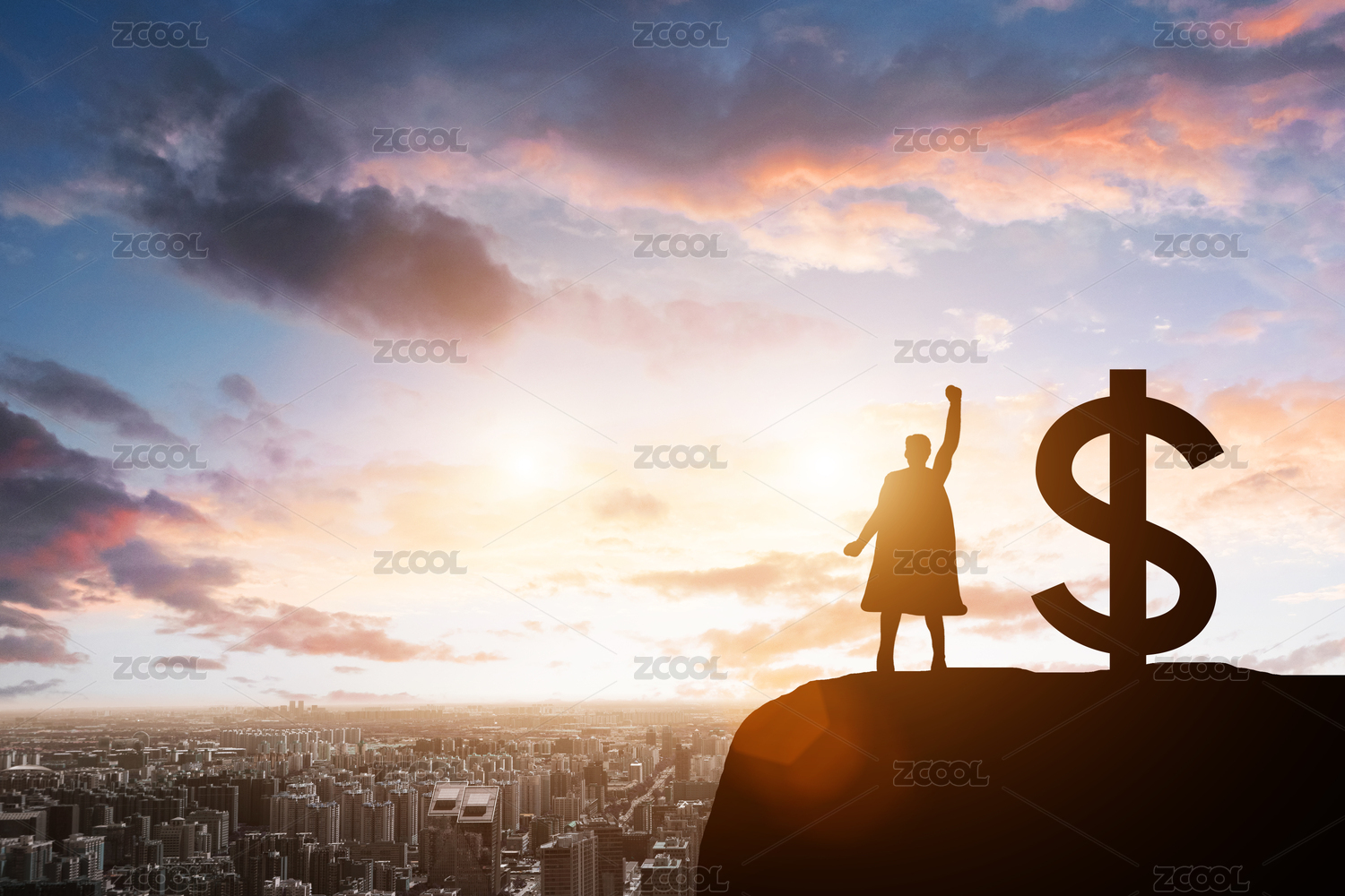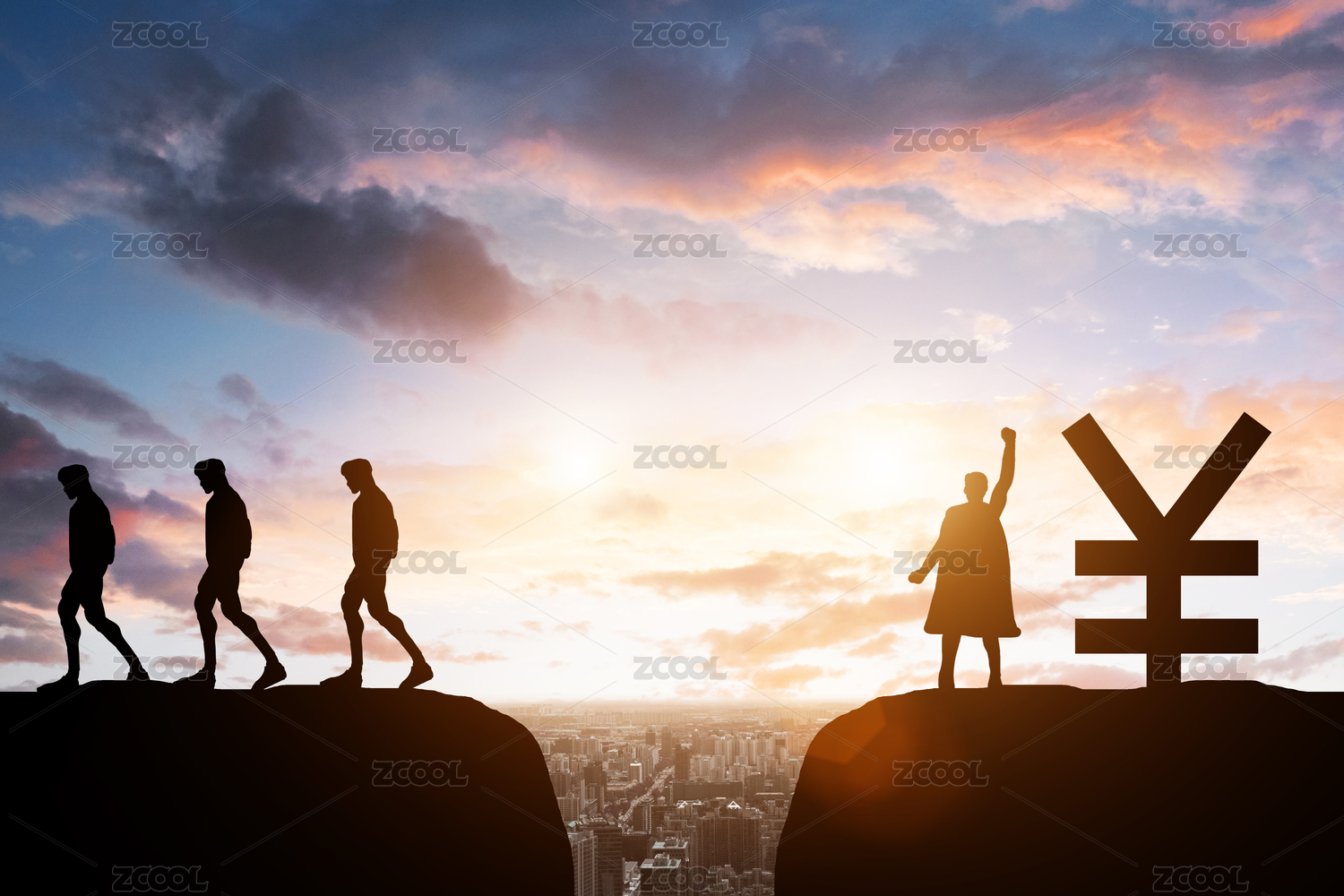 成功人士富豪勝利背影剪影