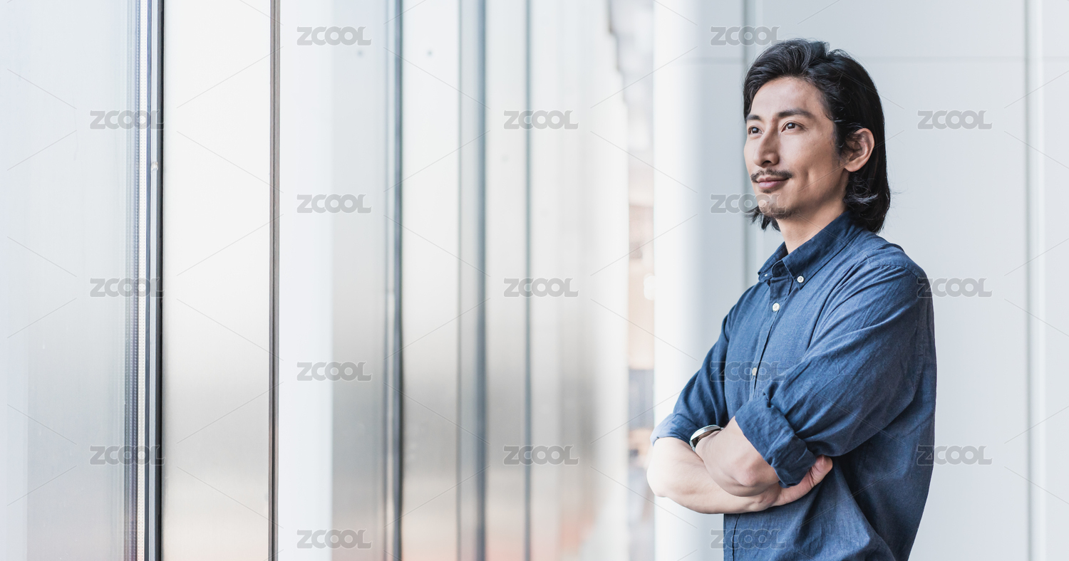 自信的成功人士雙手環(huán)胸站在窗邊