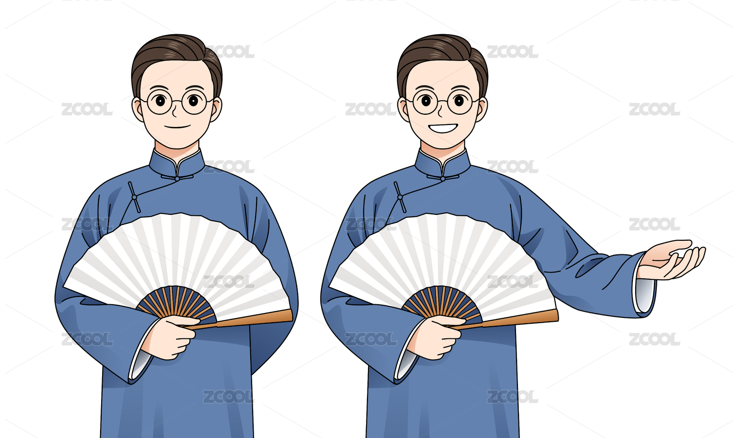 穿著中式長(zhǎng)衫的卡通人物