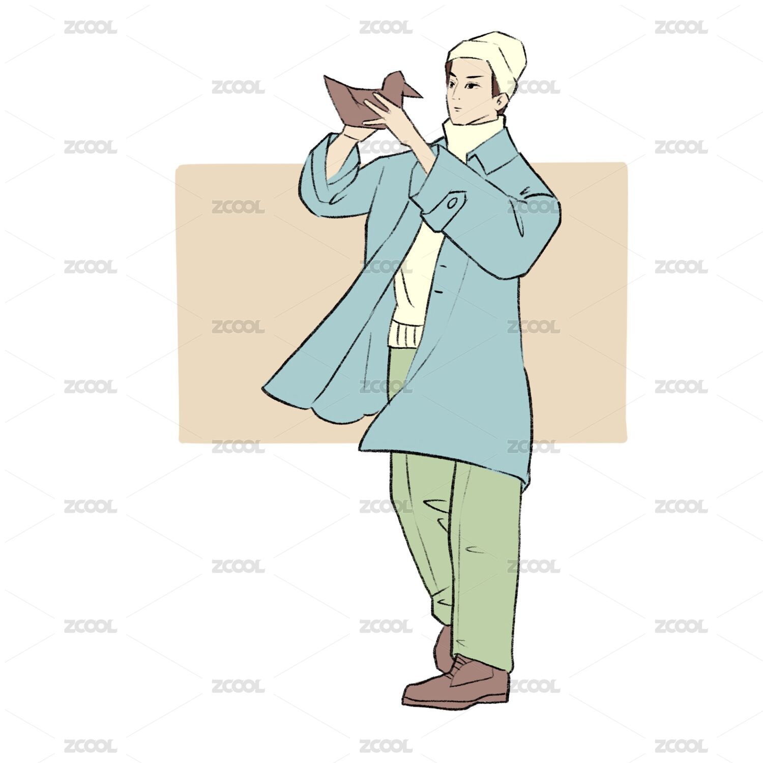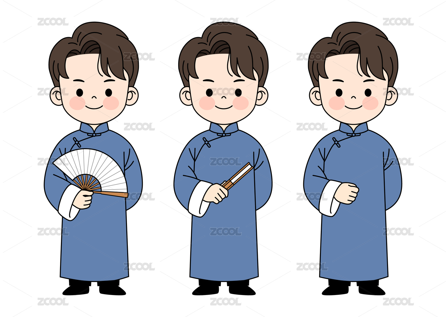 穿著中式長(zhǎng)衫的卡通男士