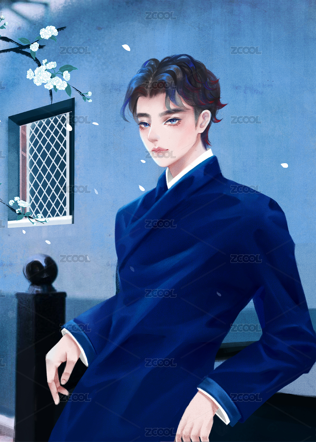 倚欄桿的長(zhǎng)衫男子