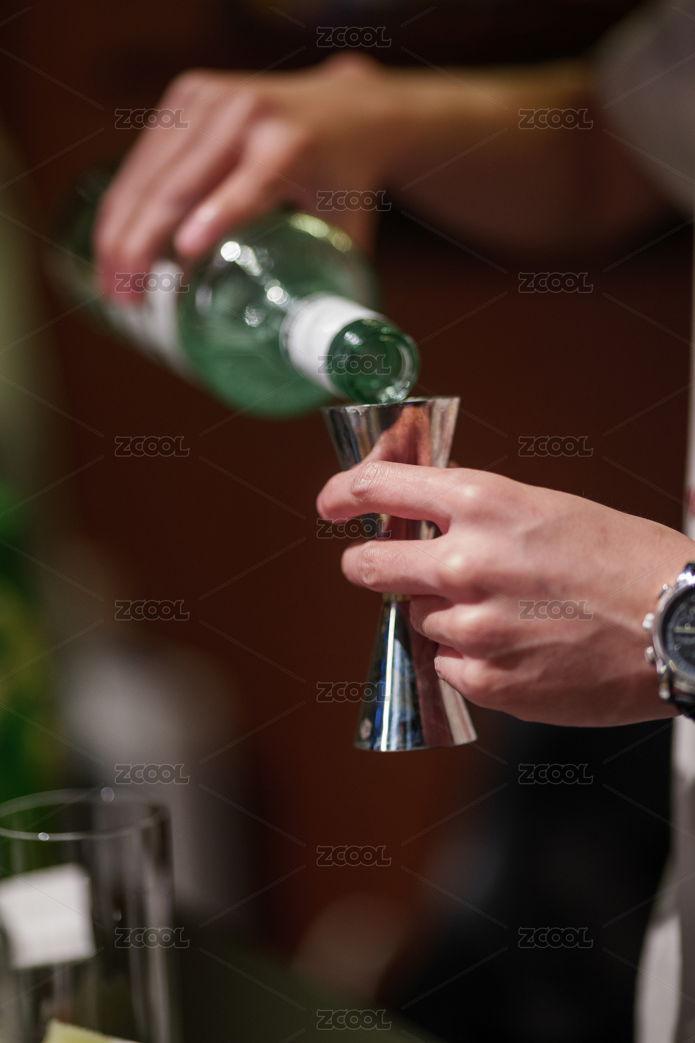 酒吧的調(diào)酒師的手在調(diào)制制作雞尾酒