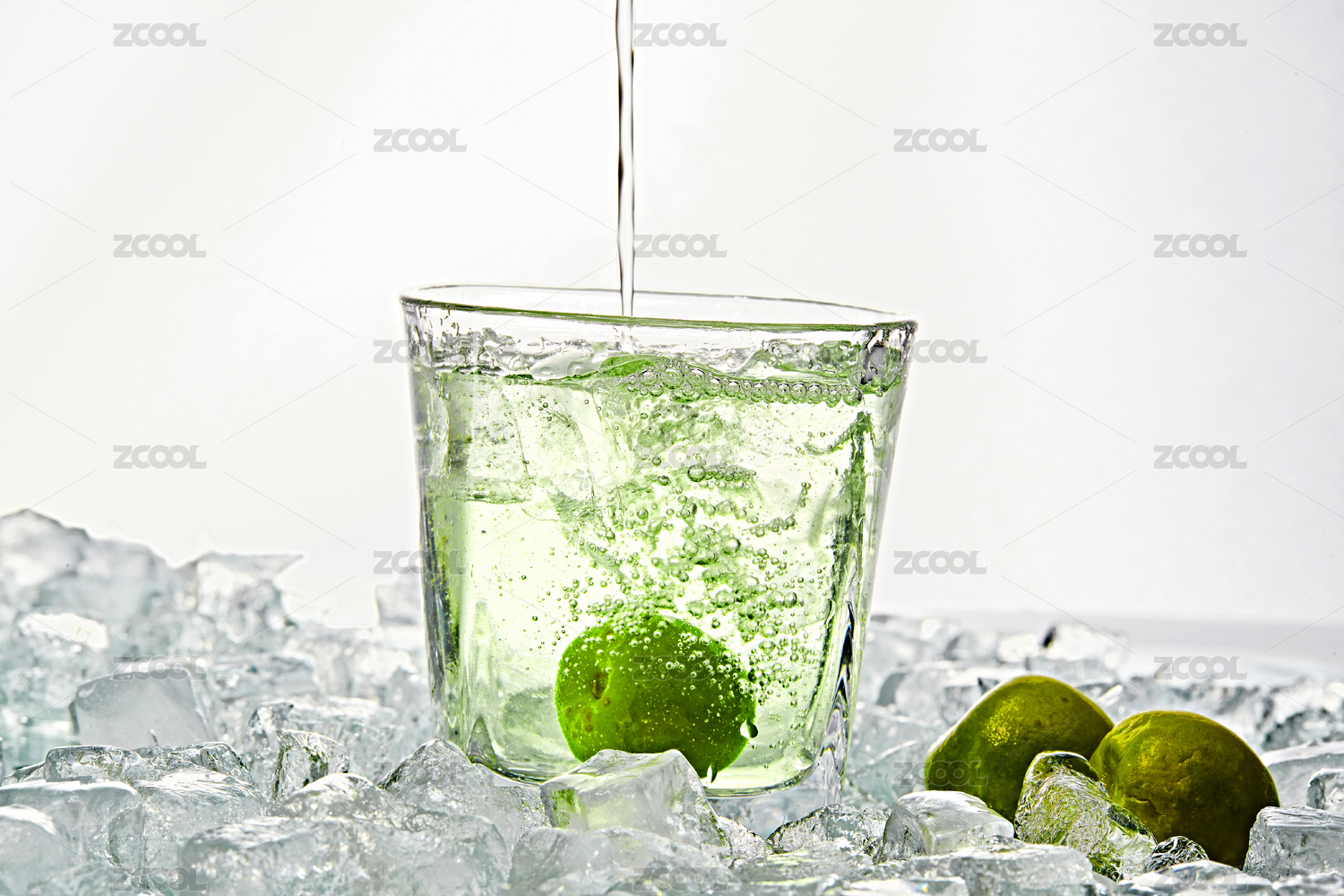 布滿冰塊的酒杯中的清涼梅子味預(yù)調(diào)酒