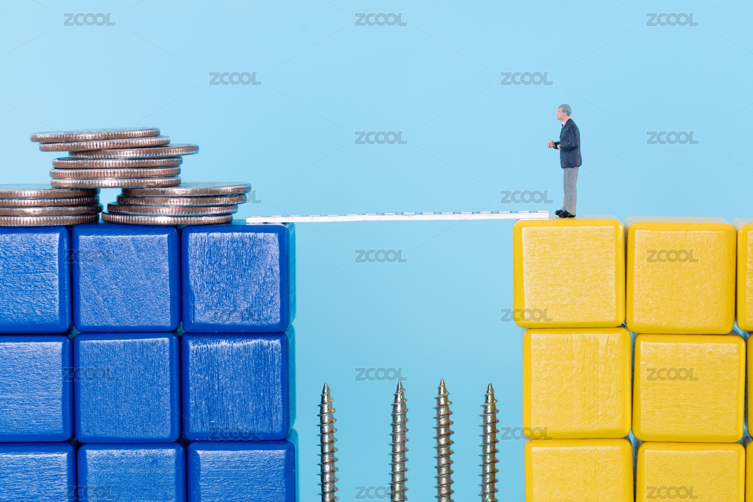 冒著危險(xiǎn)準(zhǔn)備跨橋去對面得到財(cái)富的微縮商人