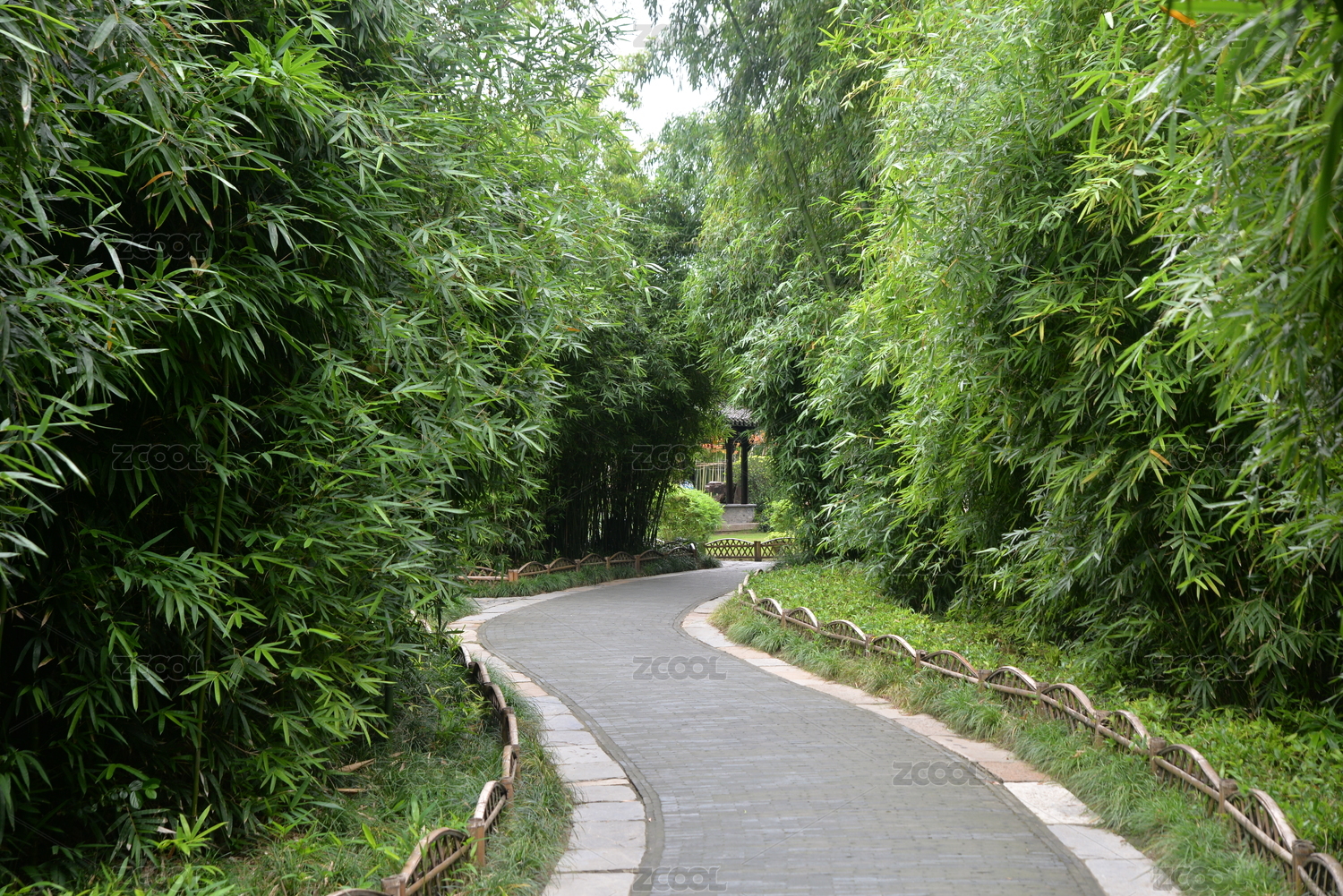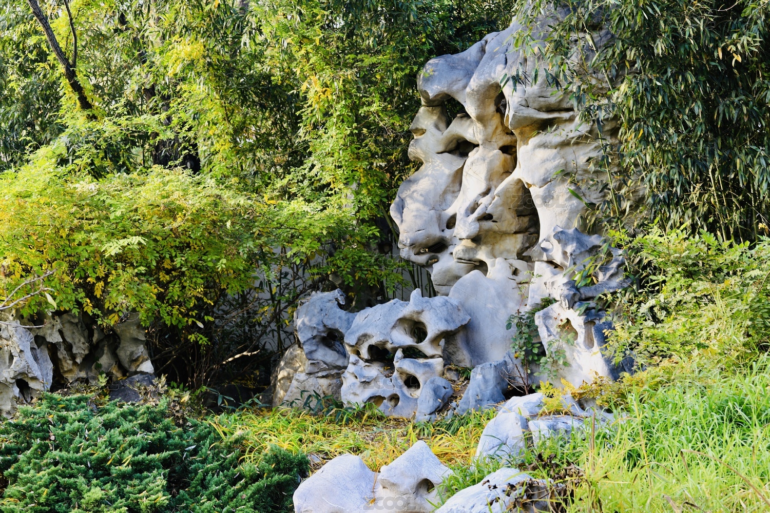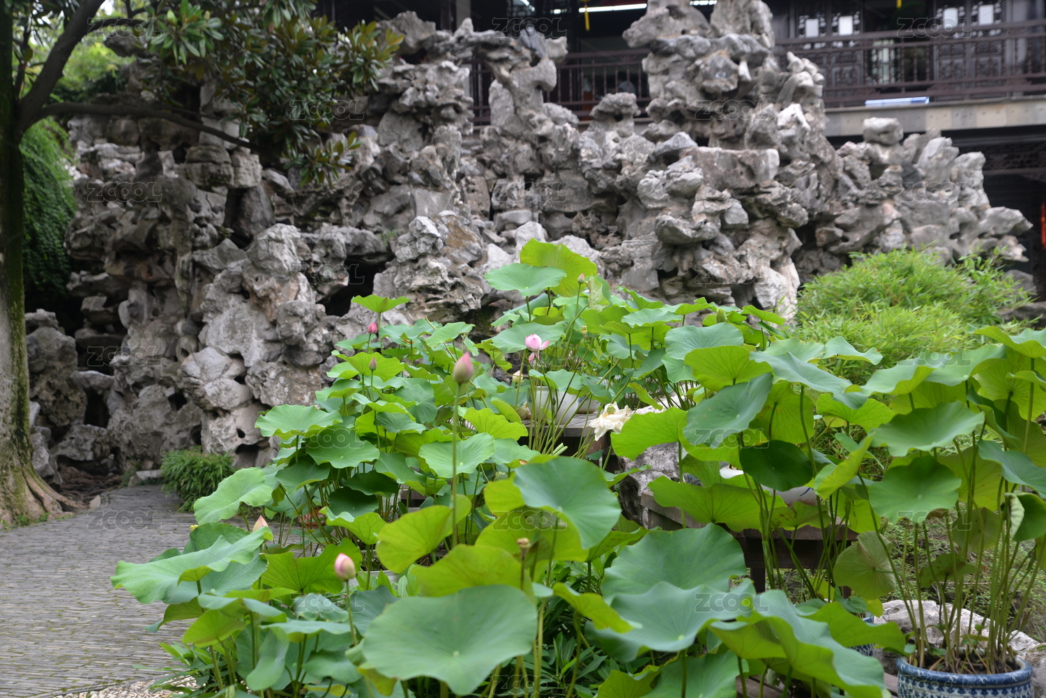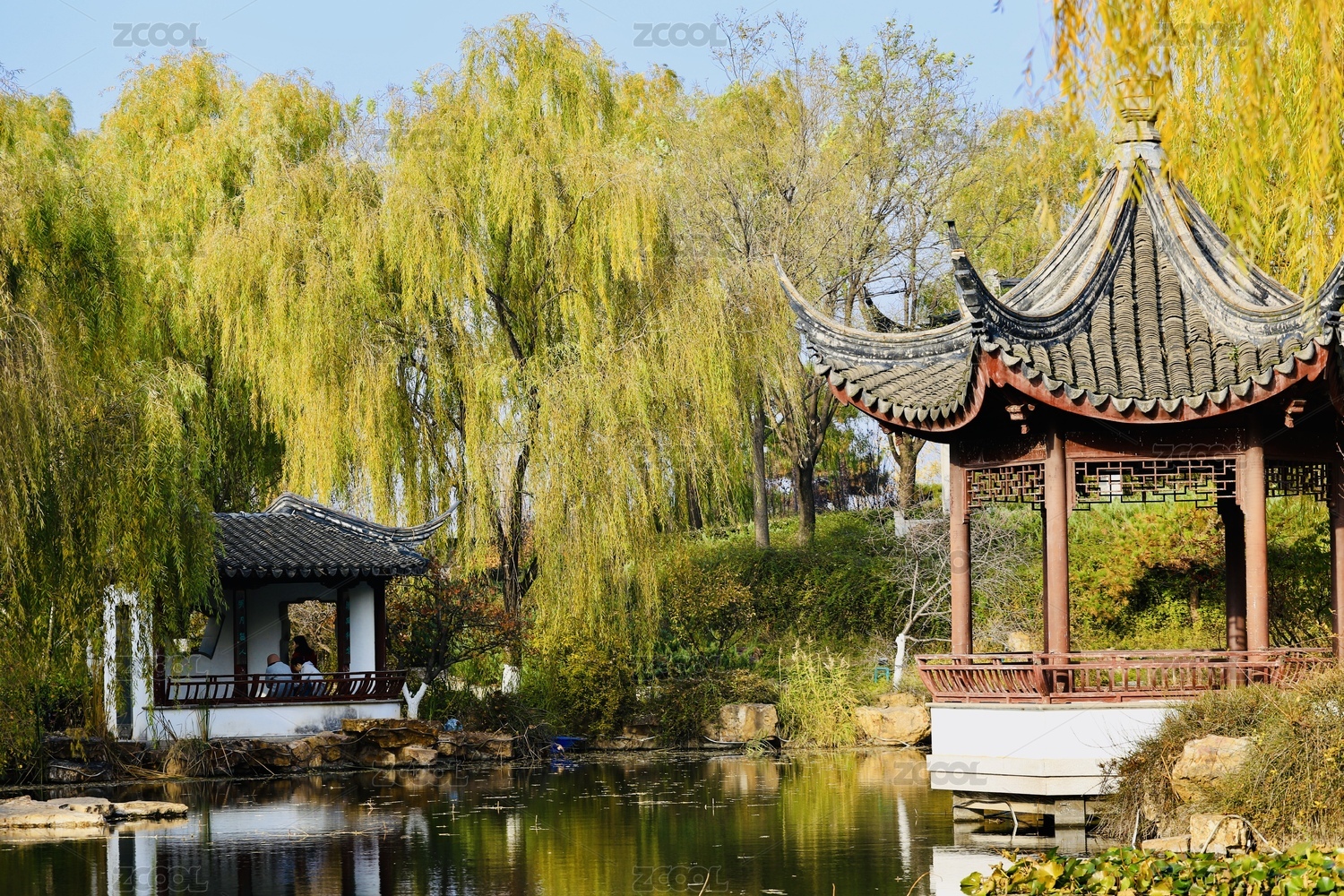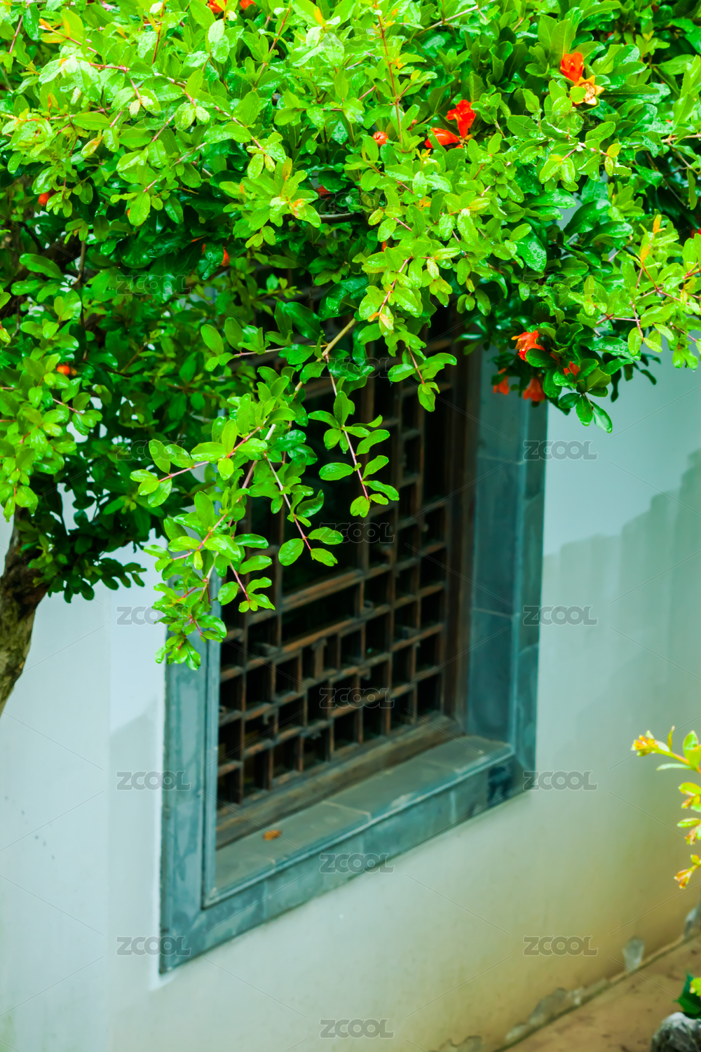 身穿白色風(fēng)衣正在觀賞江南園林的少女
