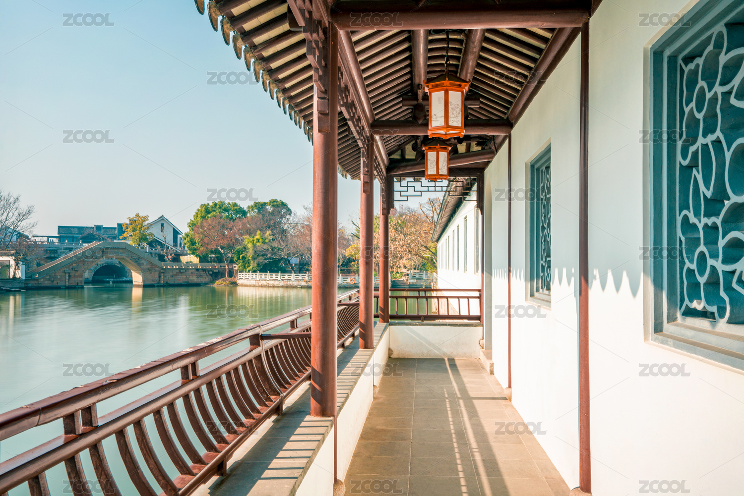 晴天的蘇州江南園林水鄉(xiāng)建筑風(fēng)光