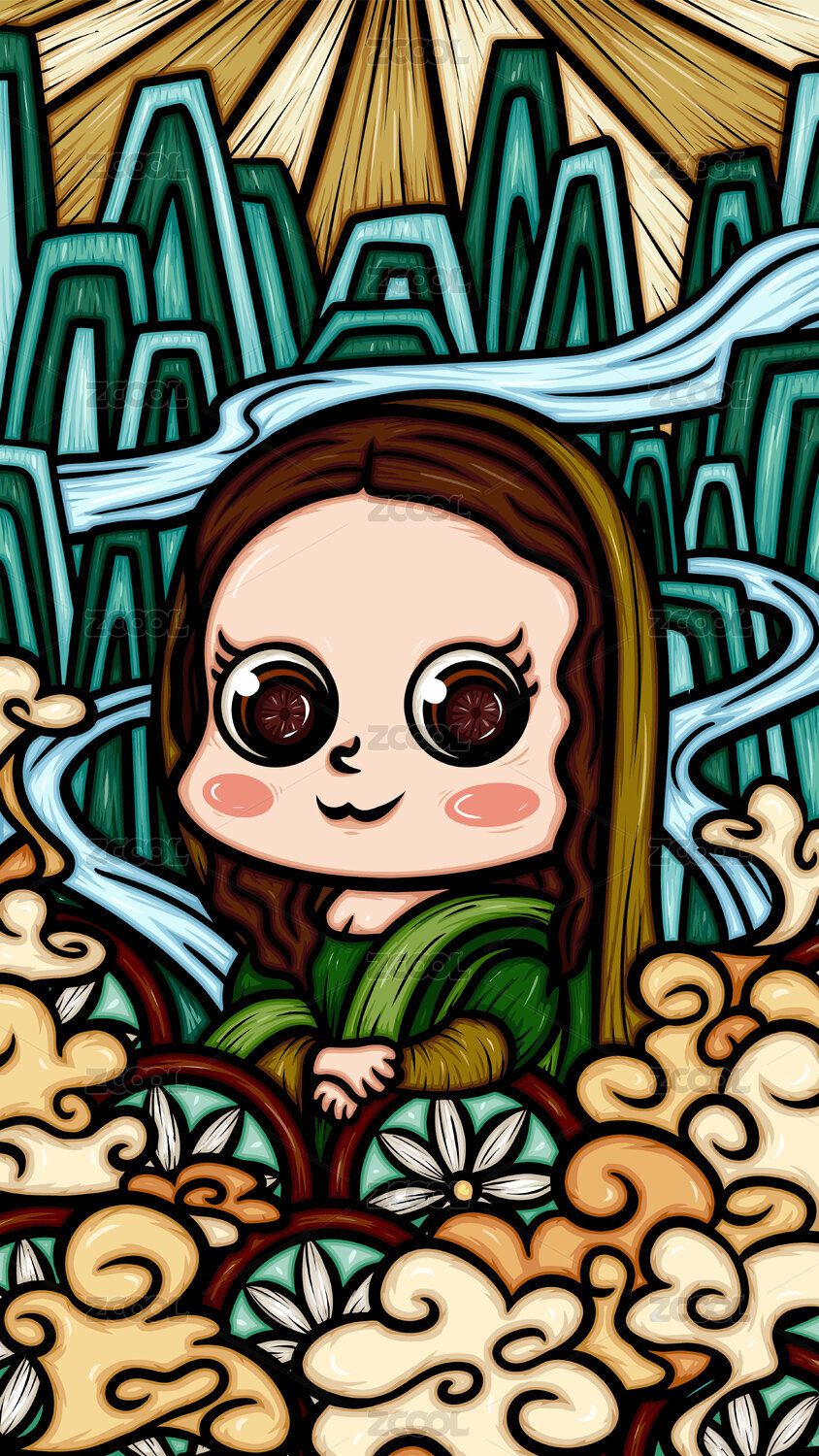 卡通版國潮插畫蒙娜麗莎