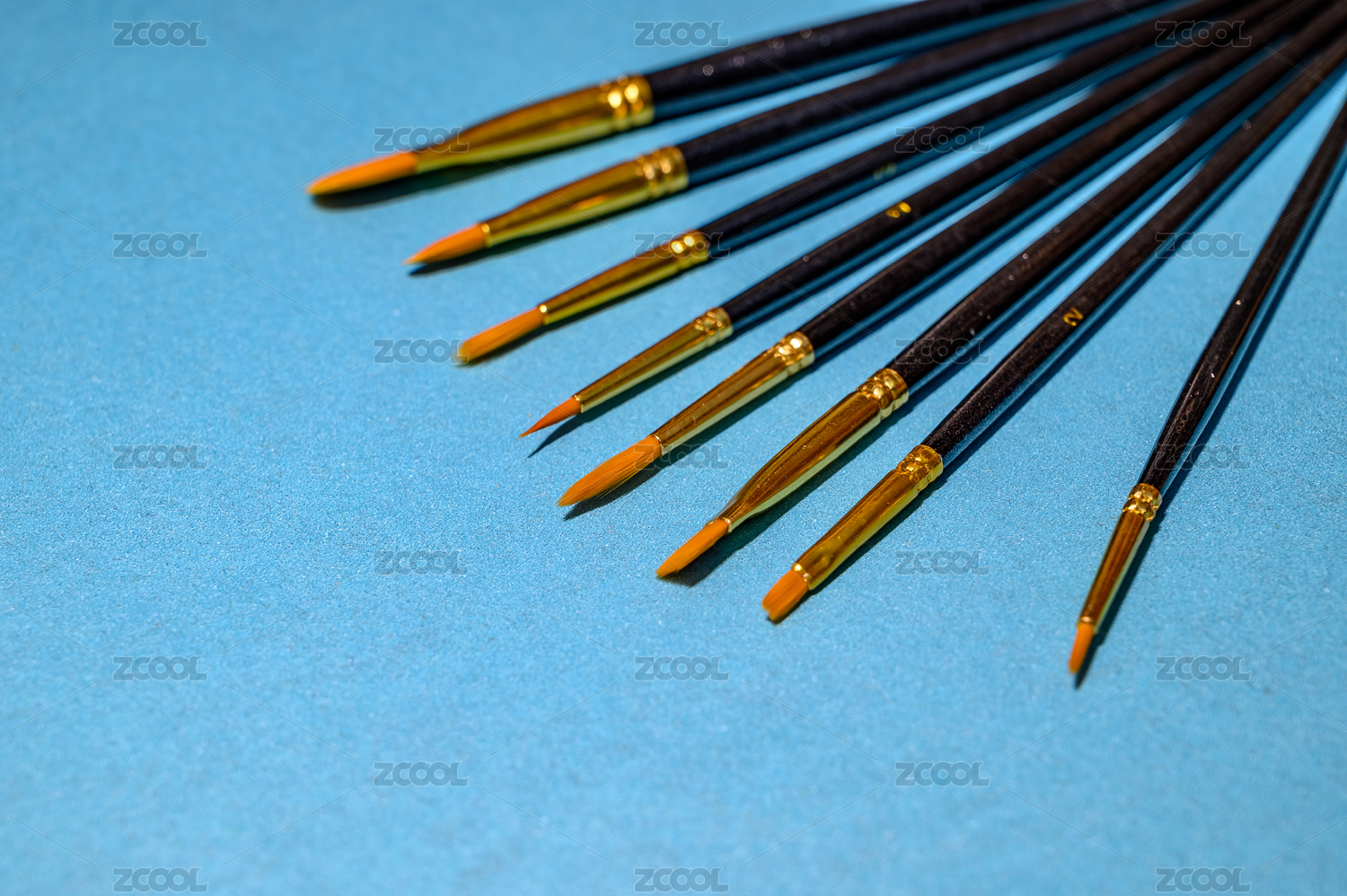藍色背景里的美術繪畫畫筆