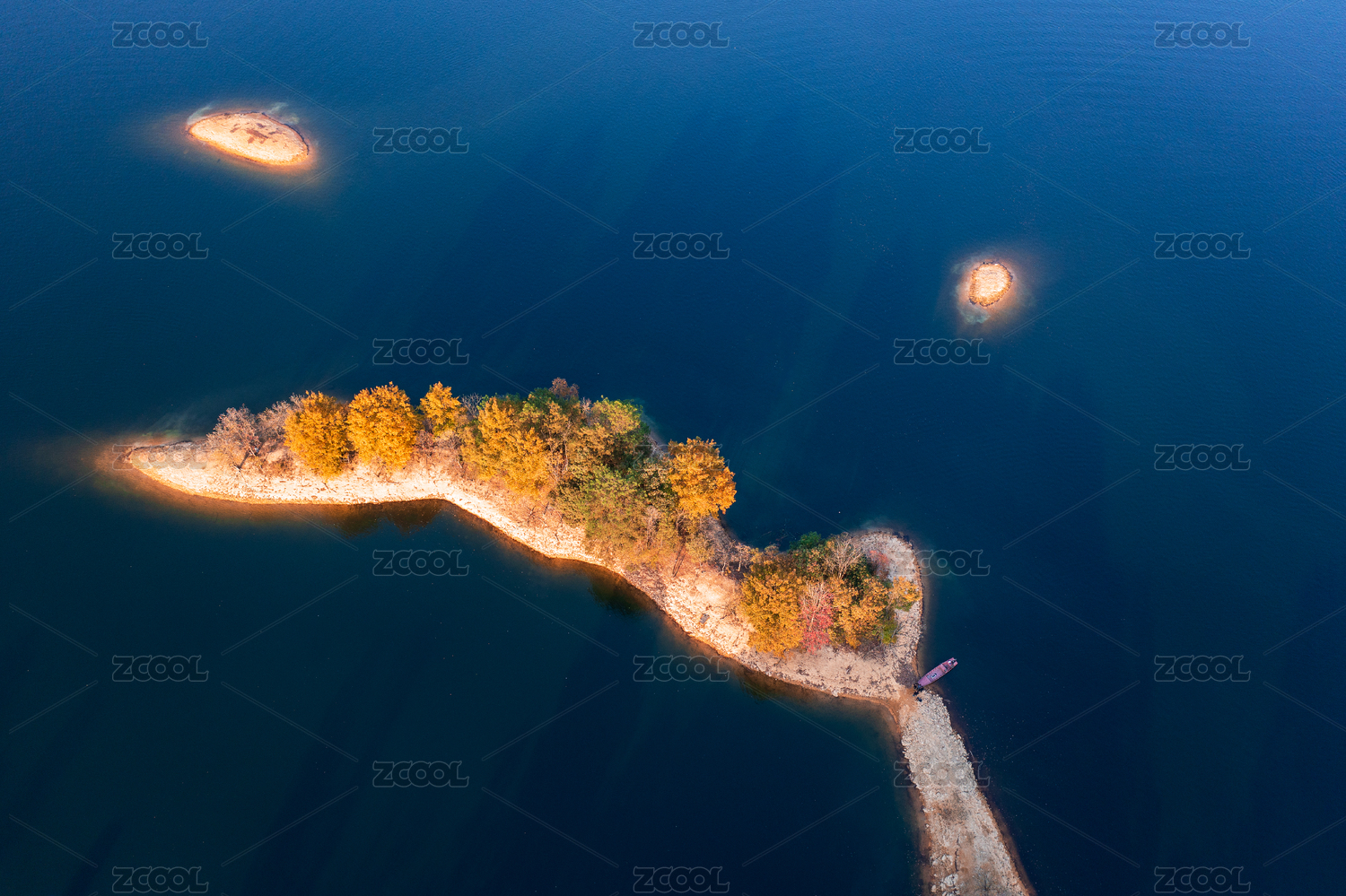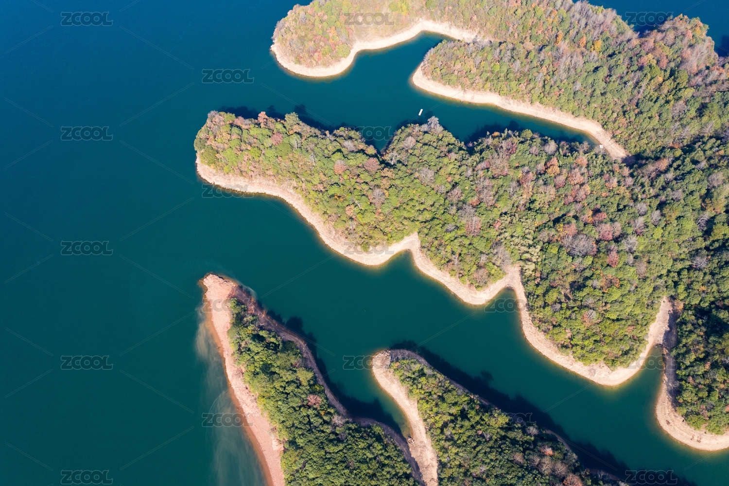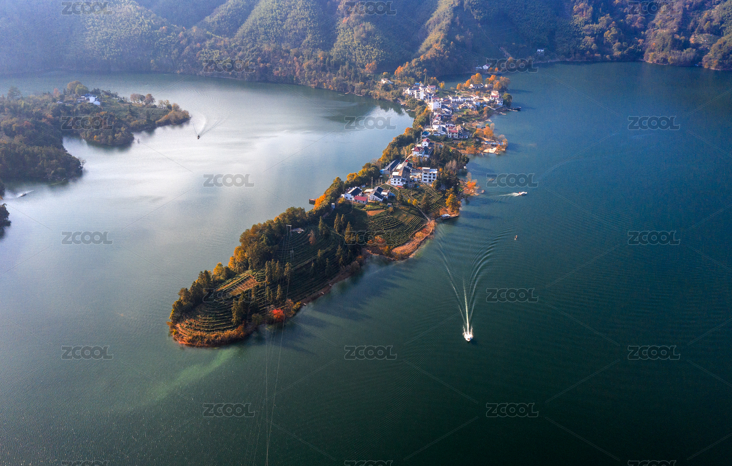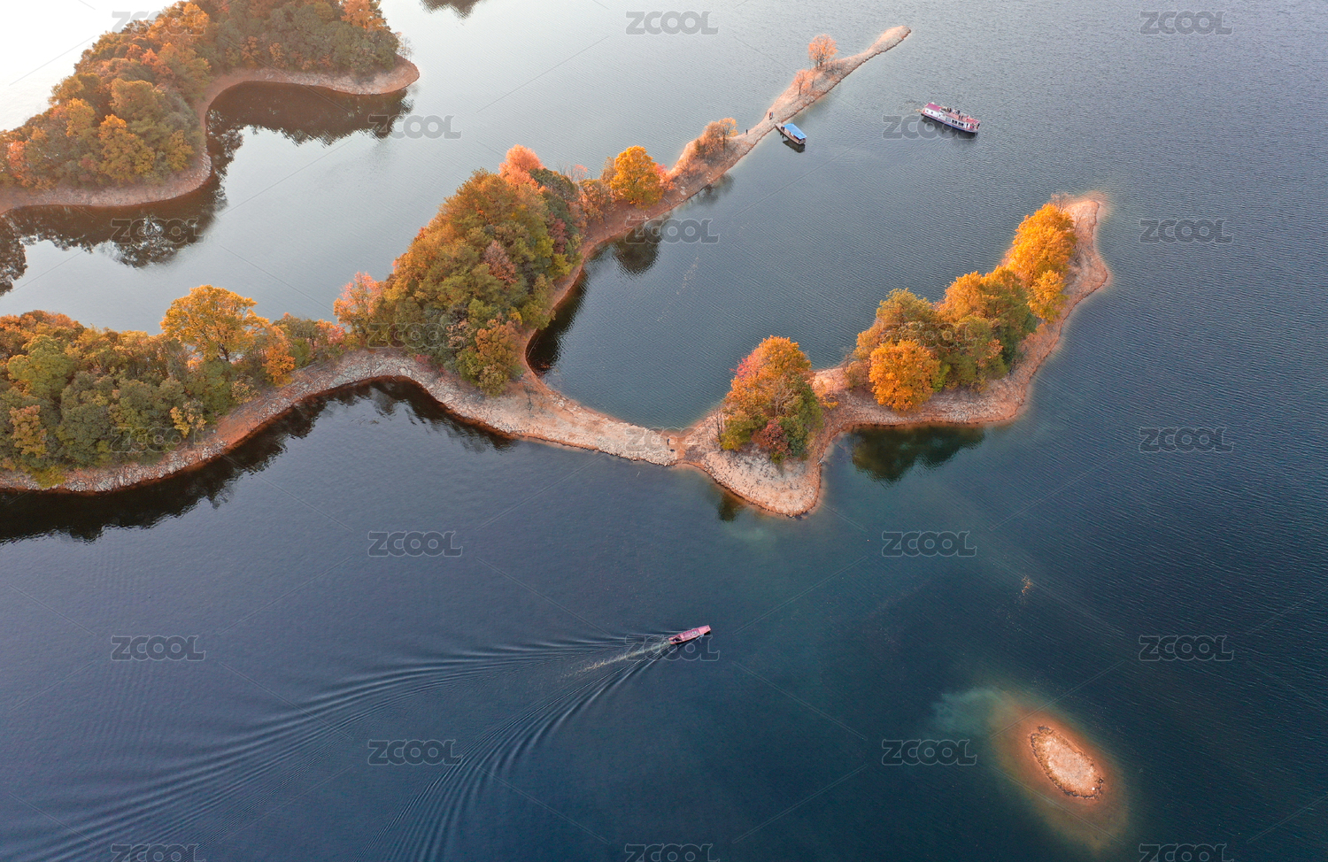 航拍中國(guó)安徽黃山太平湖秋色游船