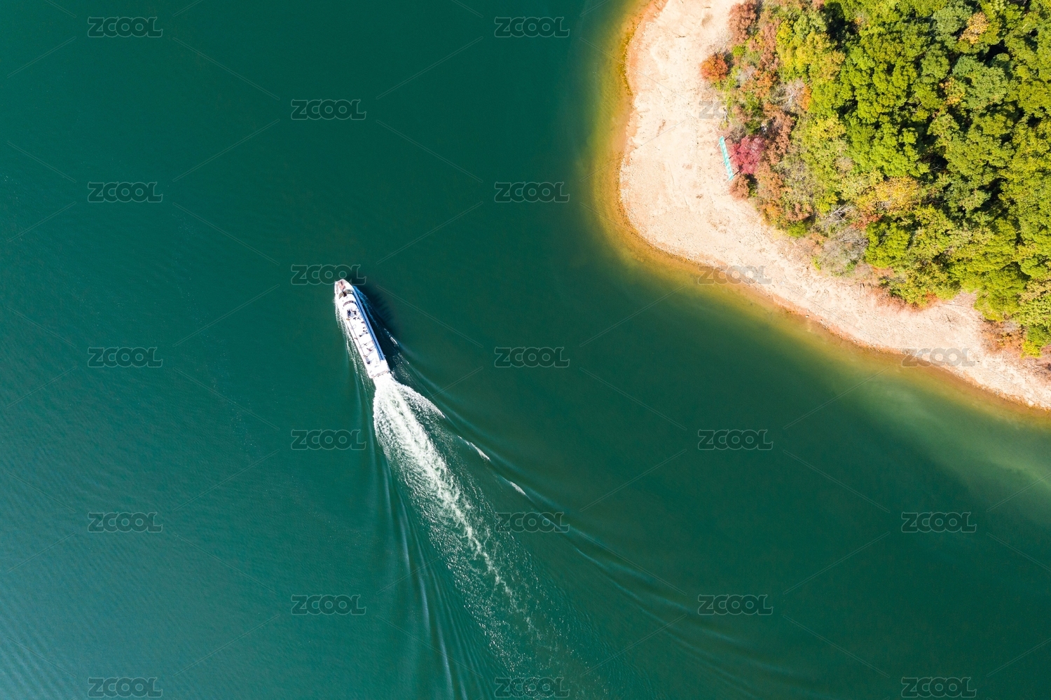 航拍安徽太平湖碧綠的水面風(fēng)光