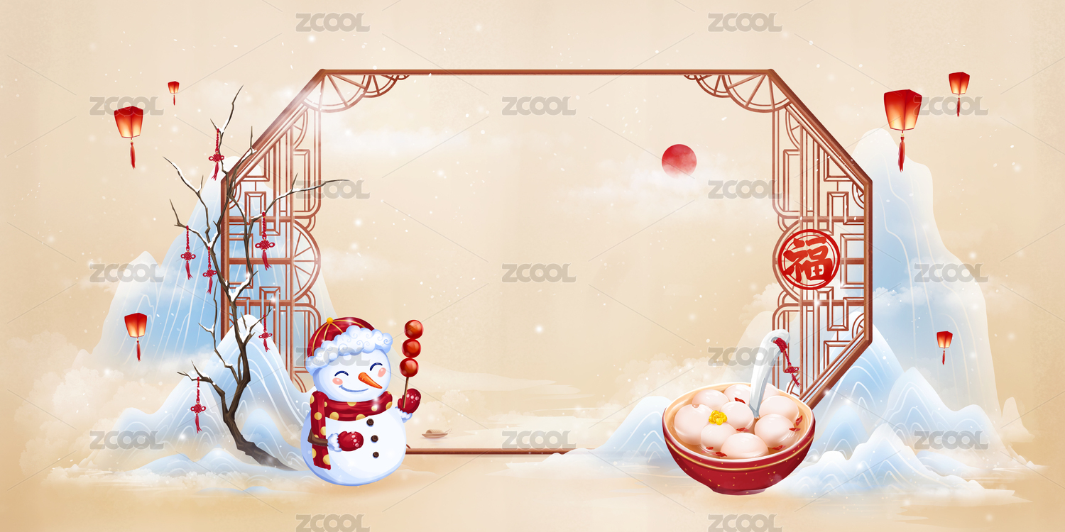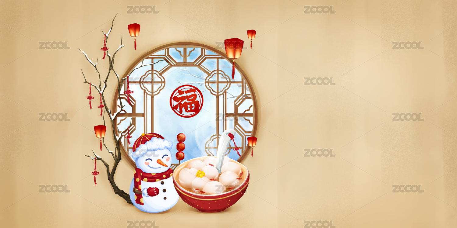 在大寒里貼福字吃湯圓堆雪人