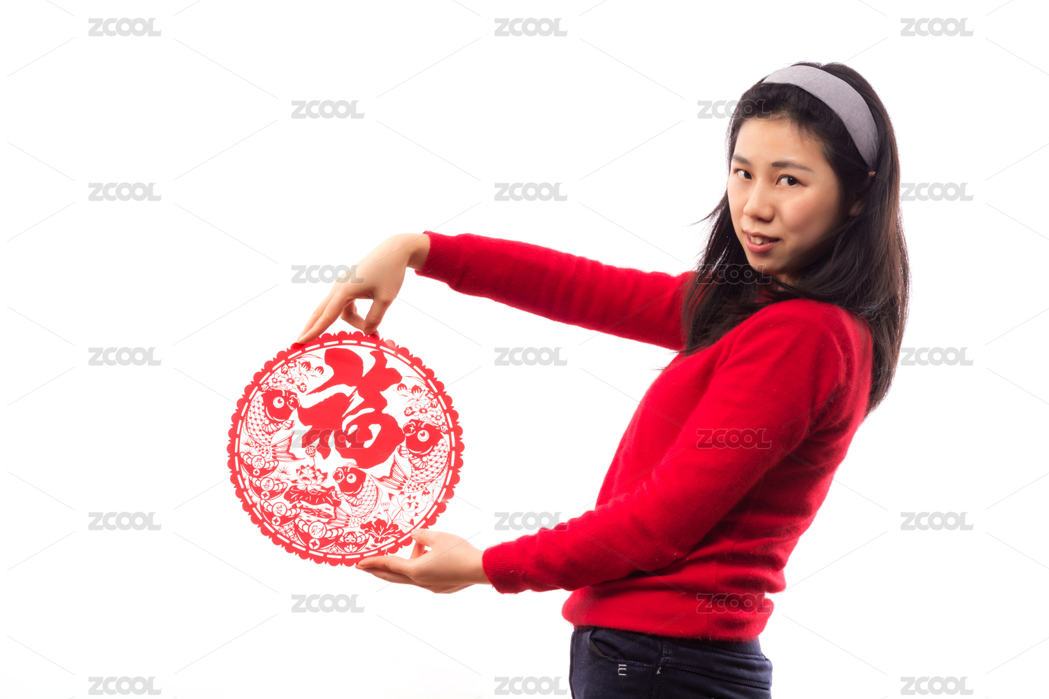 女孩貼福字