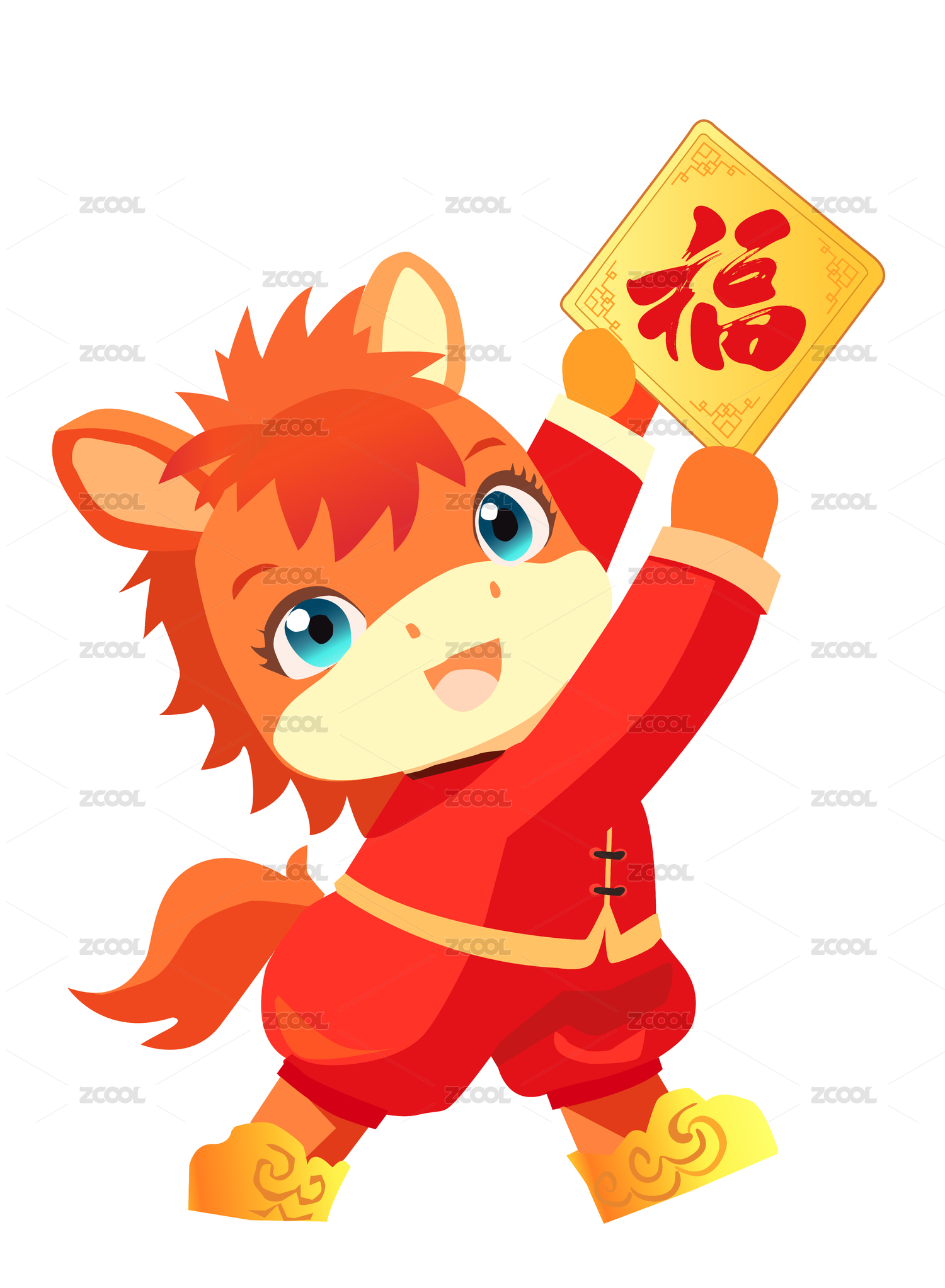 馬年手繪卡通馬吉祥物-貼福字