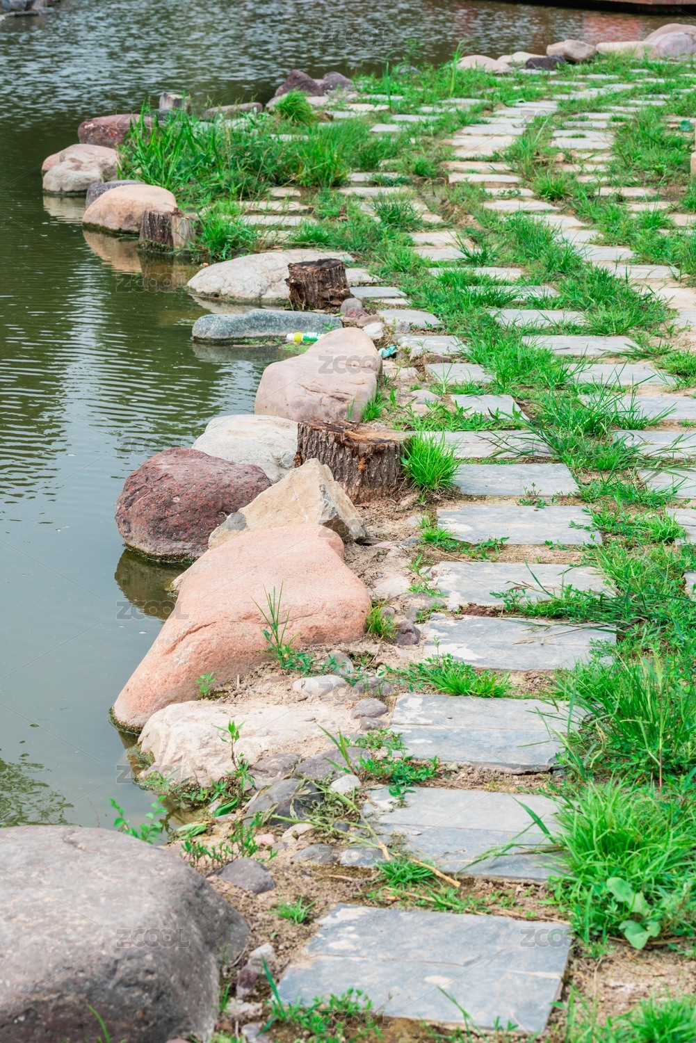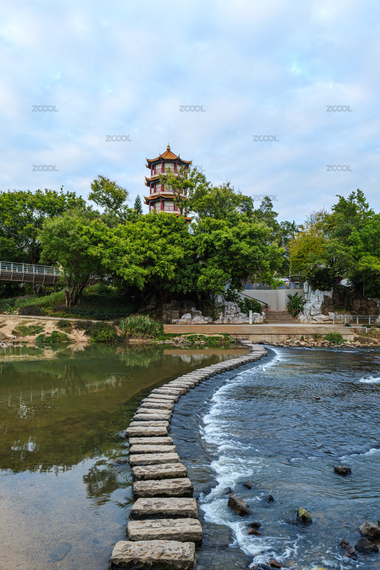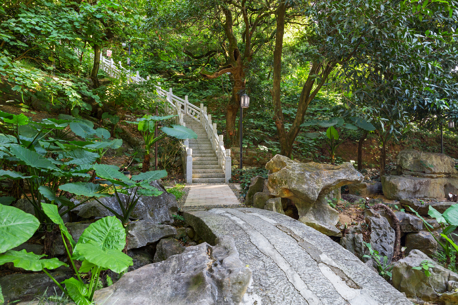 河南南陽臥龍崗文化園景區(qū)通往三友軒的石徑