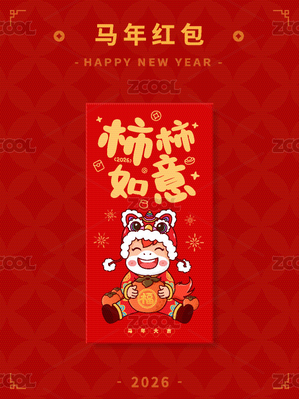 2026馬年柿柿如意紅包封面設(shè)計(jì)