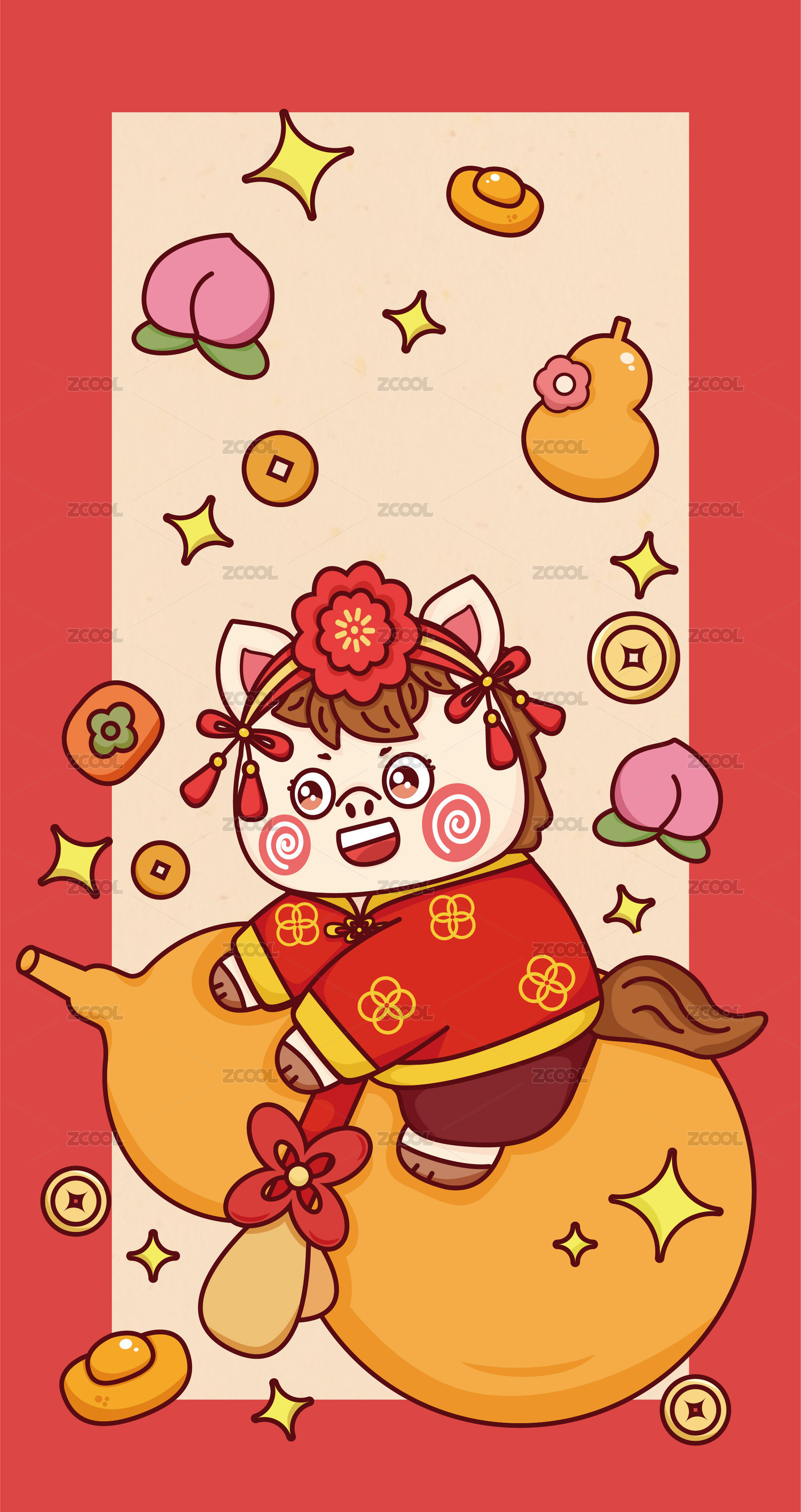 卡通馬年祝福紅包封面設(shè)計(jì)