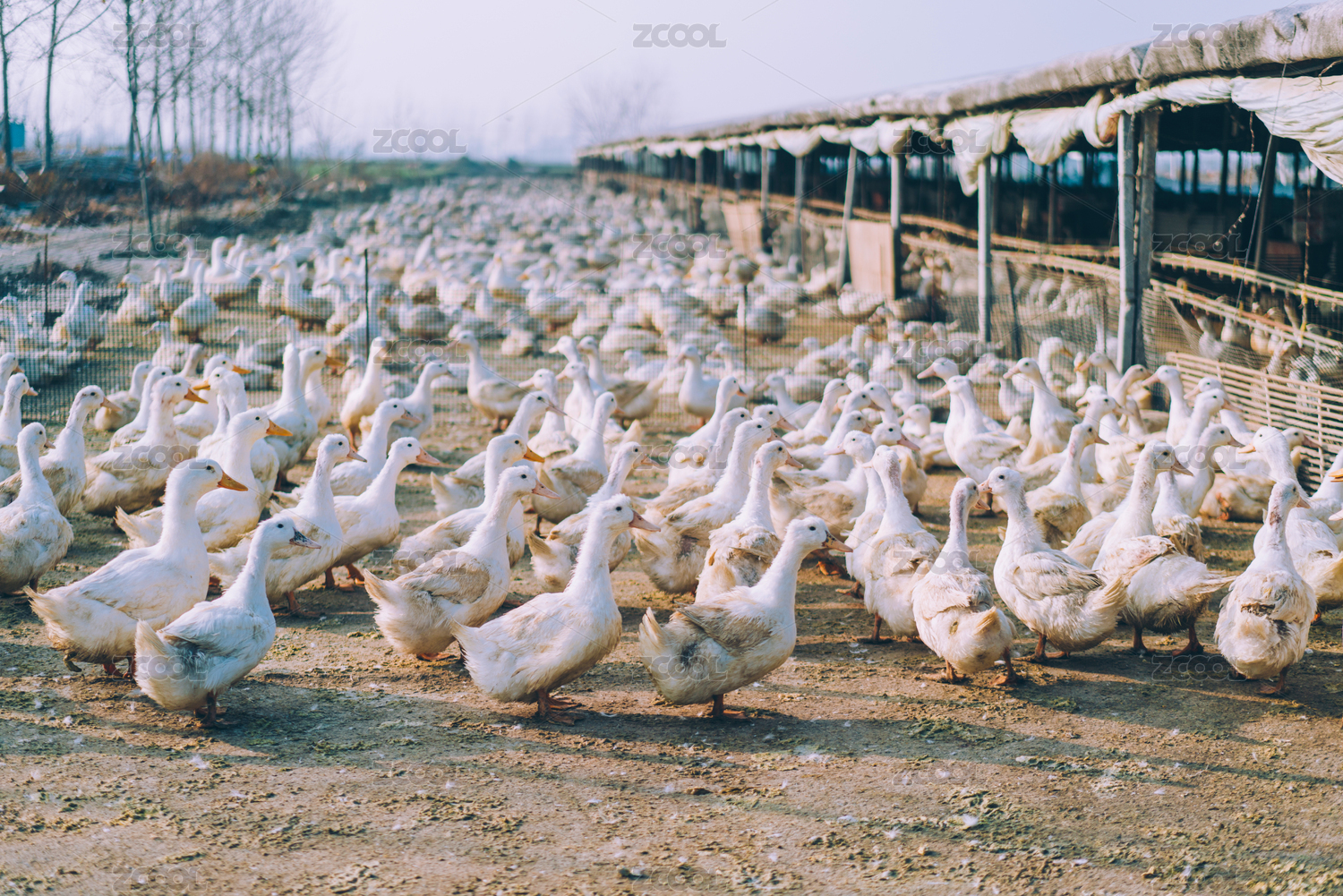 鄉(xiāng)村農(nóng)業(yè)養(yǎng)殖成群的大白鵝