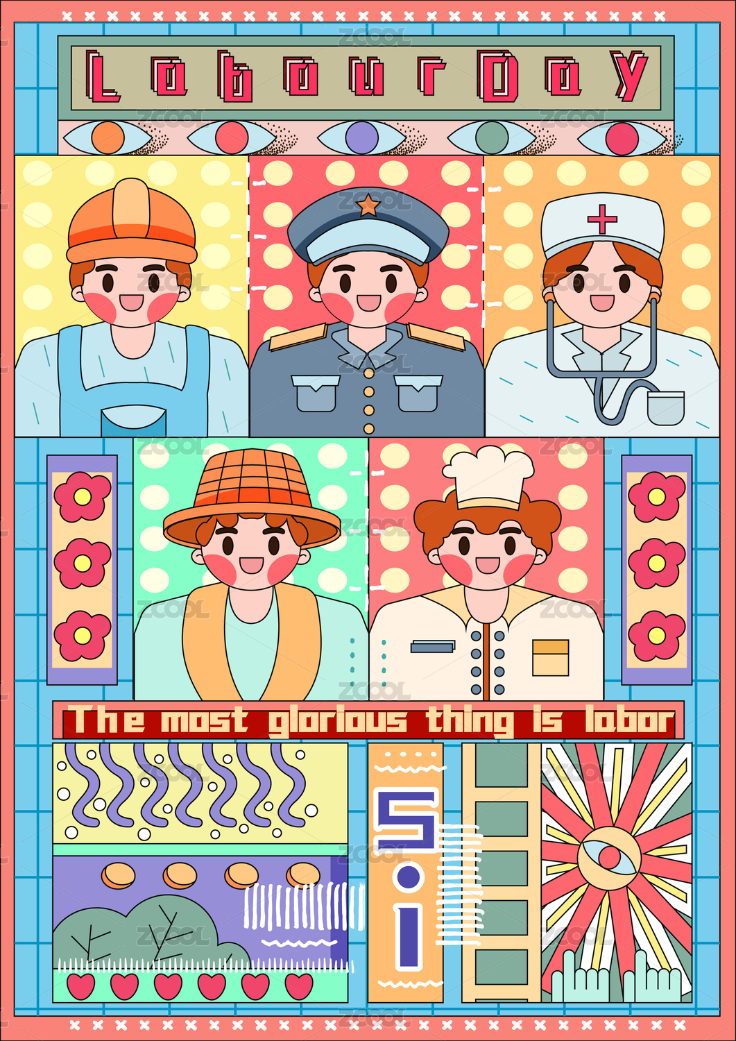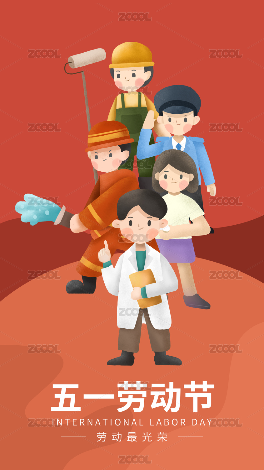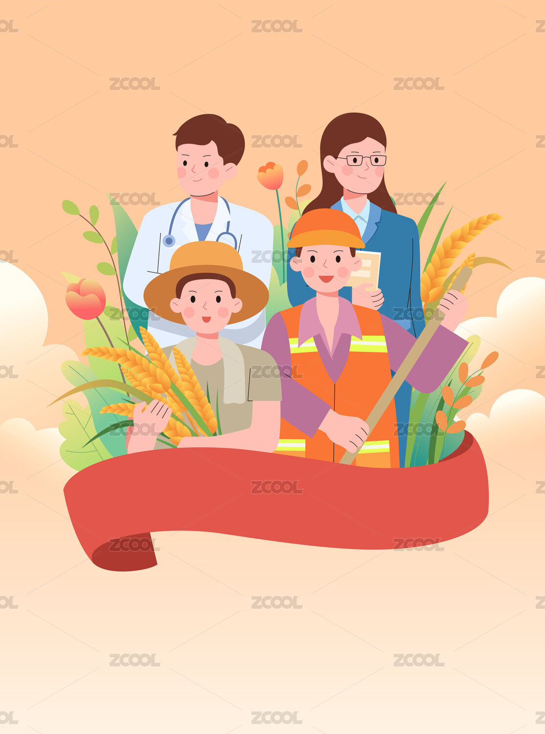 醫(yī)生老師農(nóng)民環(huán)衛(wèi)工插畫勞動(dòng)節(jié)海報(bào)