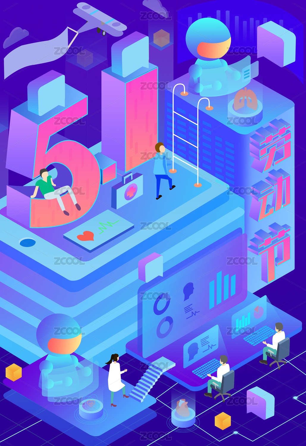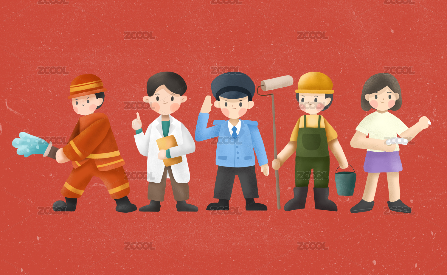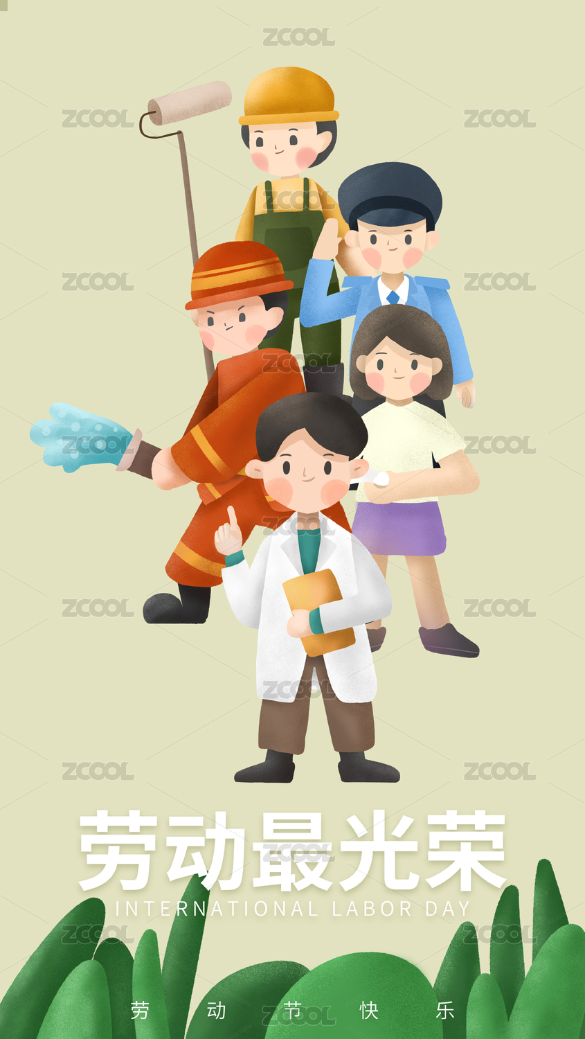 醫(yī)生老師農(nóng)民環(huán)衛(wèi)工插畫勞動(dòng)節(jié)海報(bào)