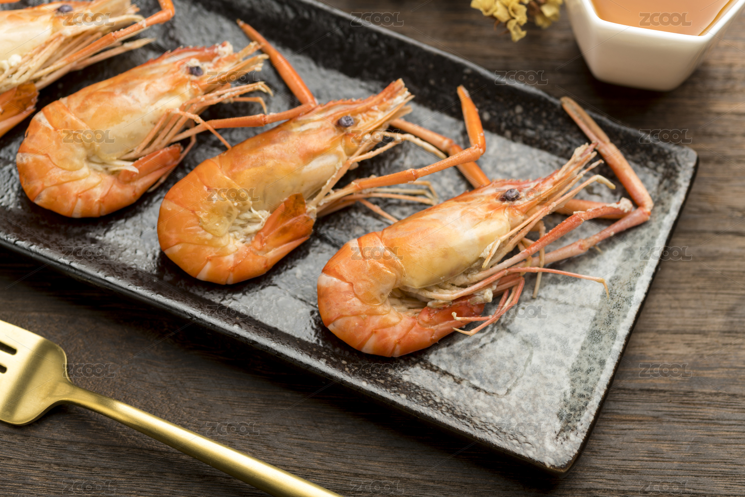 深色背景上一碗蒜蓉羅氏蝦