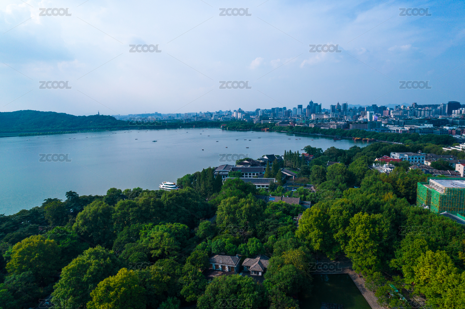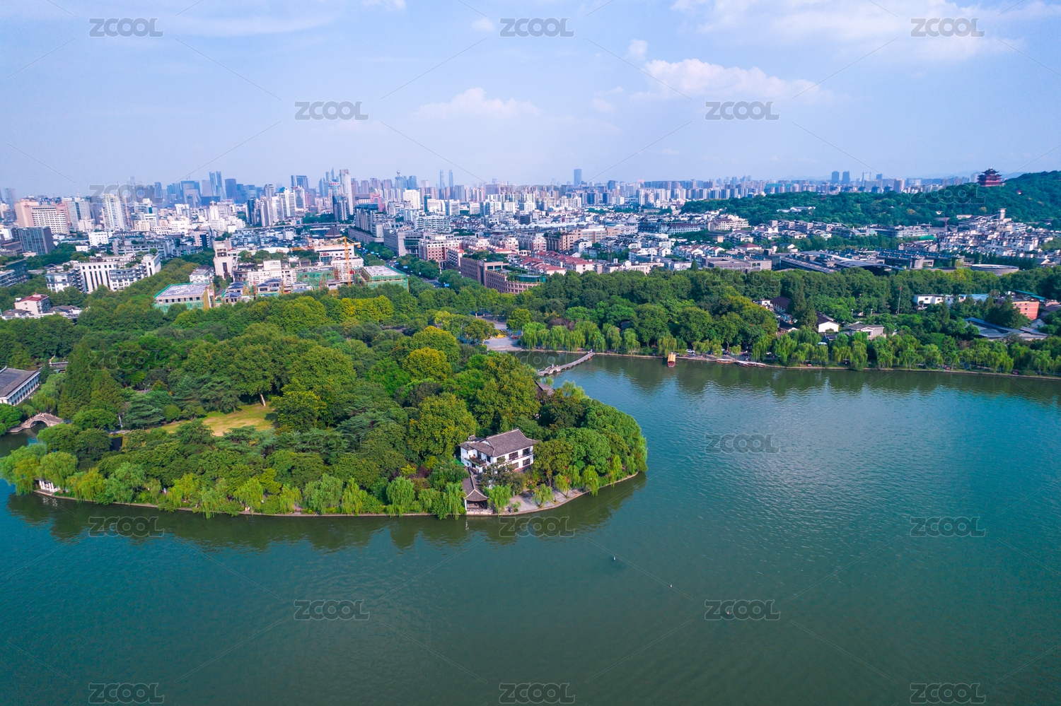 全景航拍杭州西湖風(fēng)景區(qū)