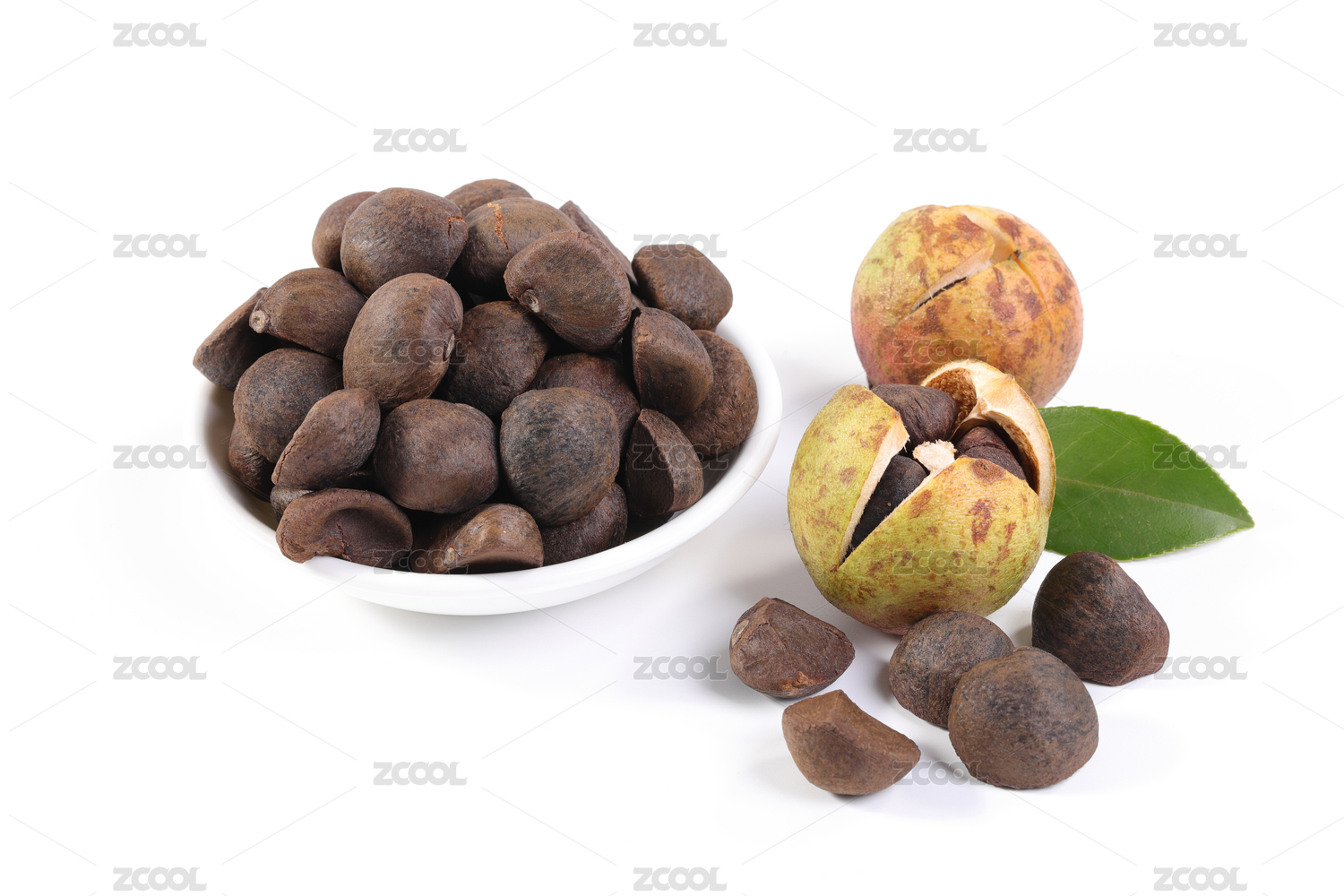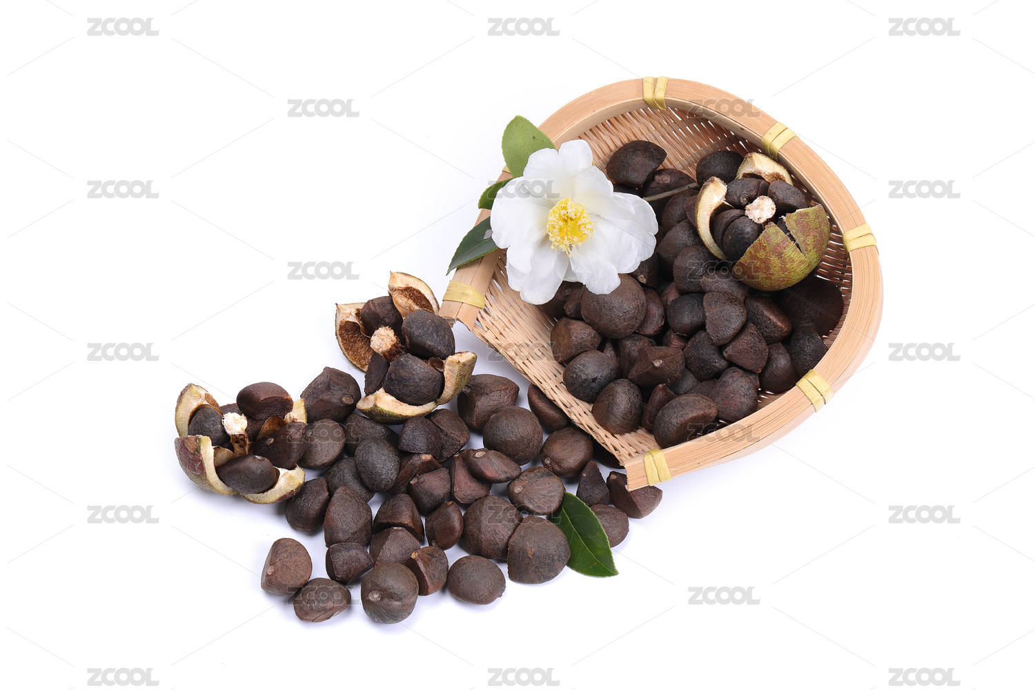 白背景上的山茶籽