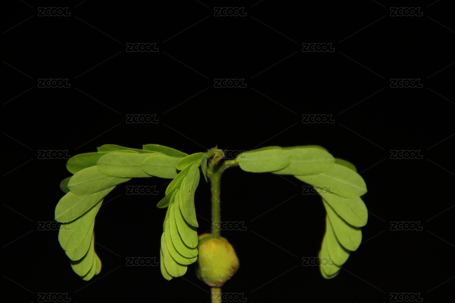 夏天夜里花園中嬌嫩的酸角小苗生機(jī)勃勃