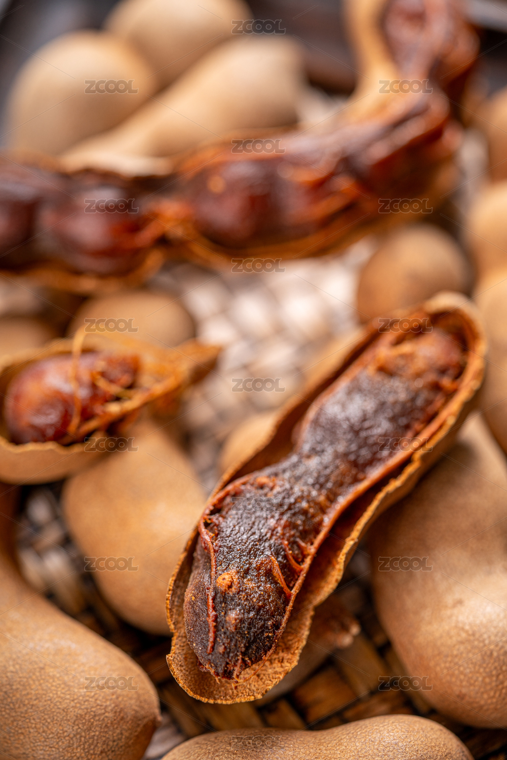 裂開的酸角干特寫