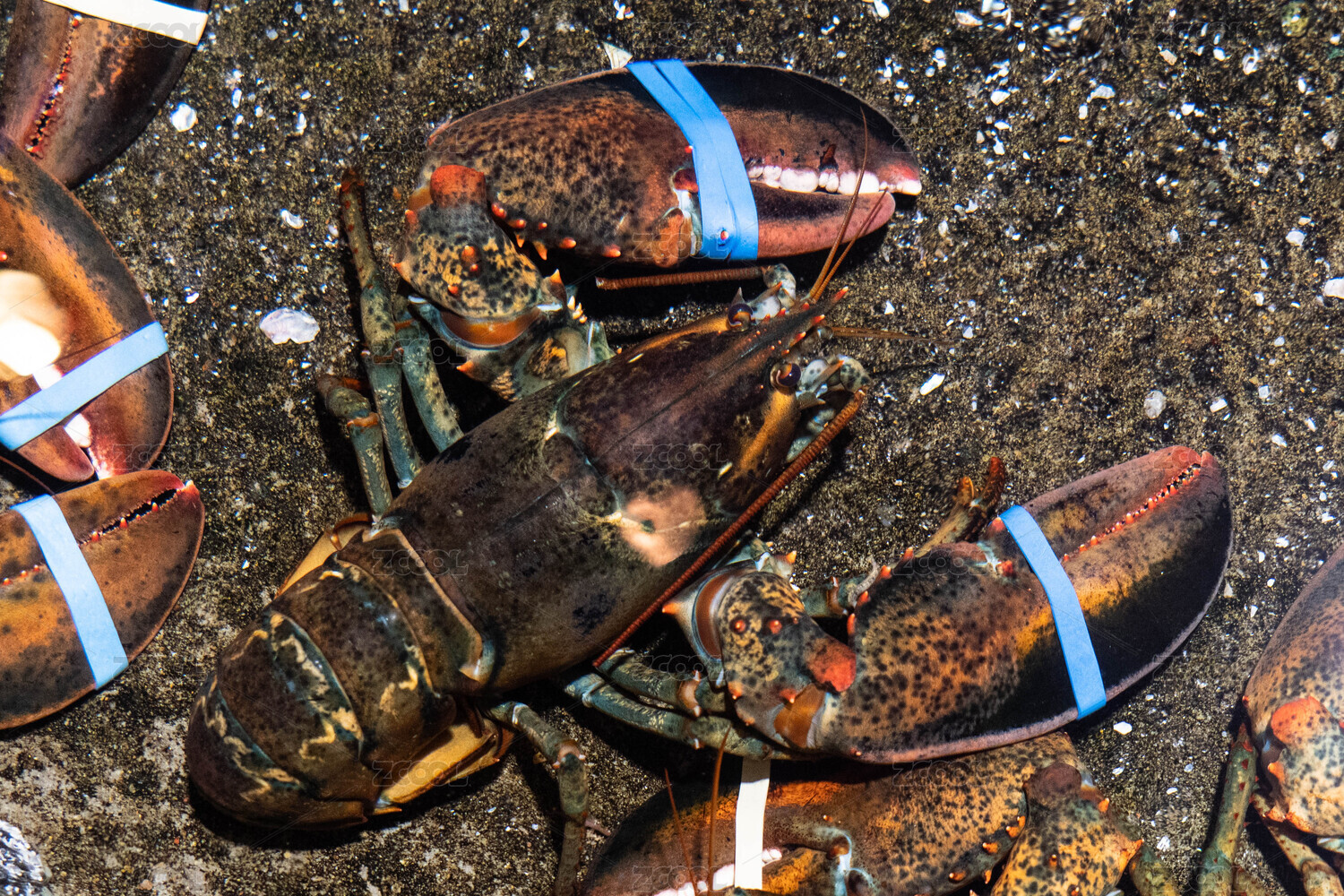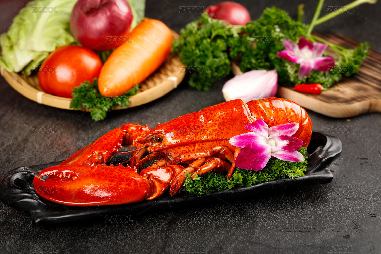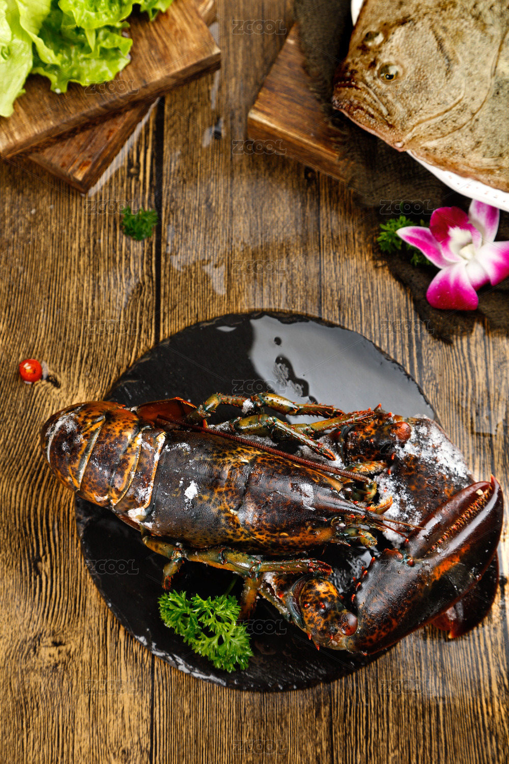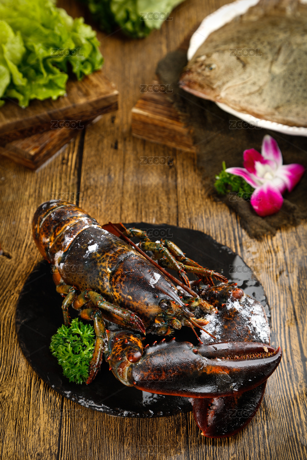 黑石底上放著一只新鮮的波士頓大龍蝦