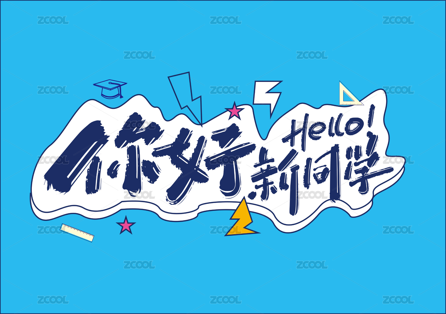 手寫大氣你好新同學藝術(shù)字