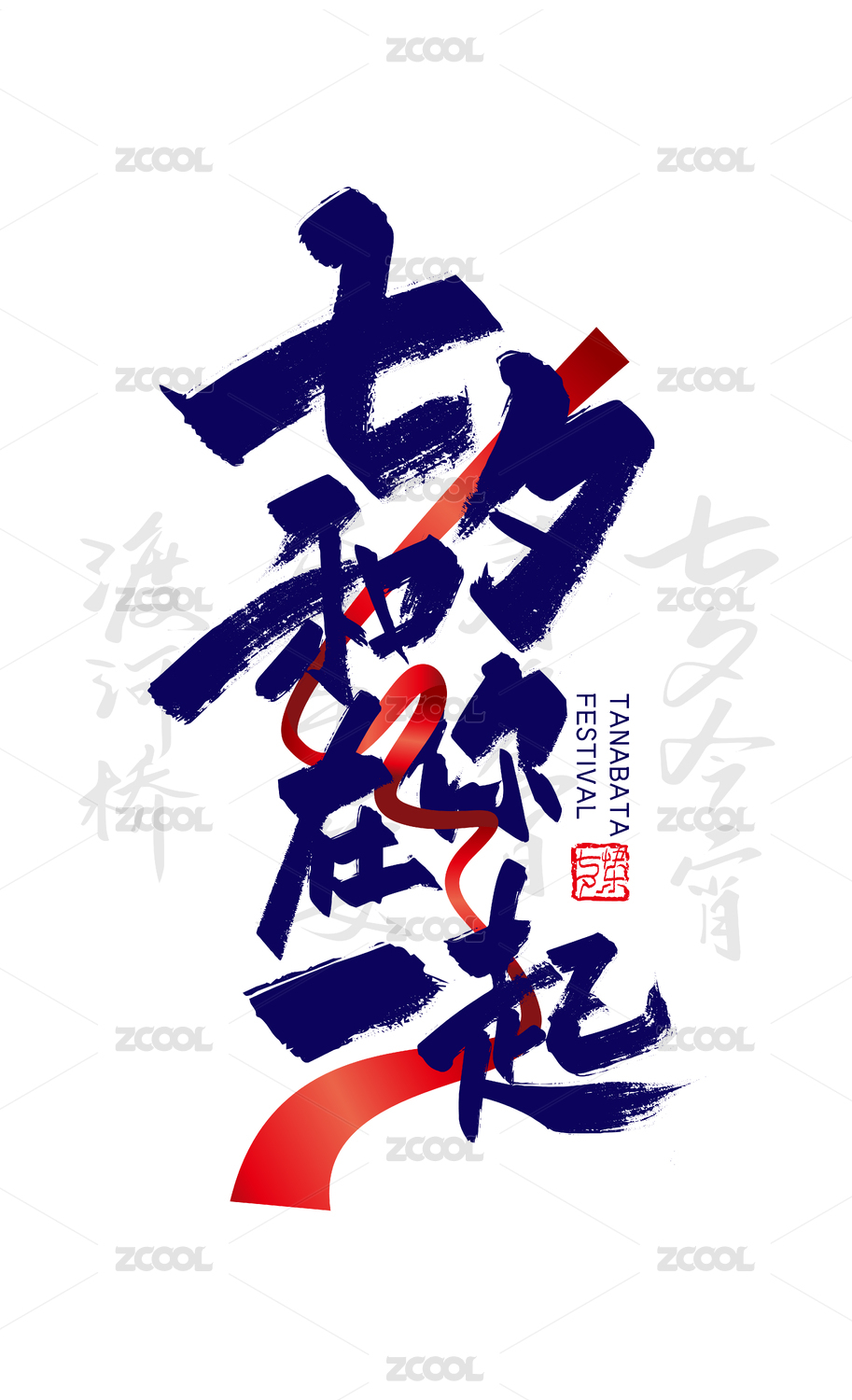 藍色手寫七夕和你在一起字體