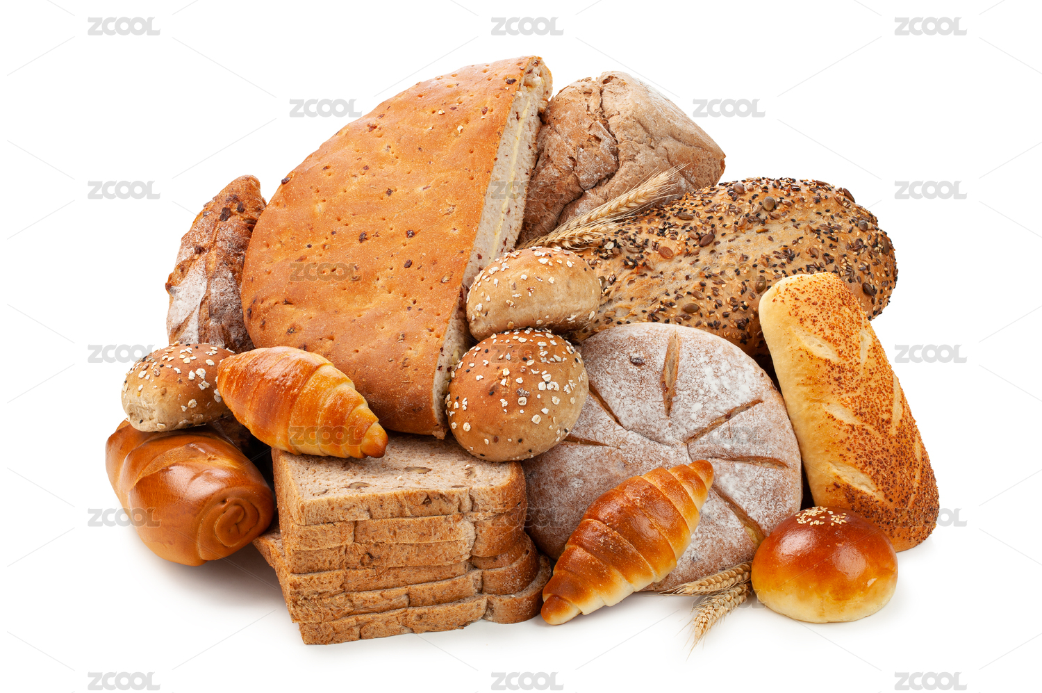 一堆各種不同的谷物面包和小麥