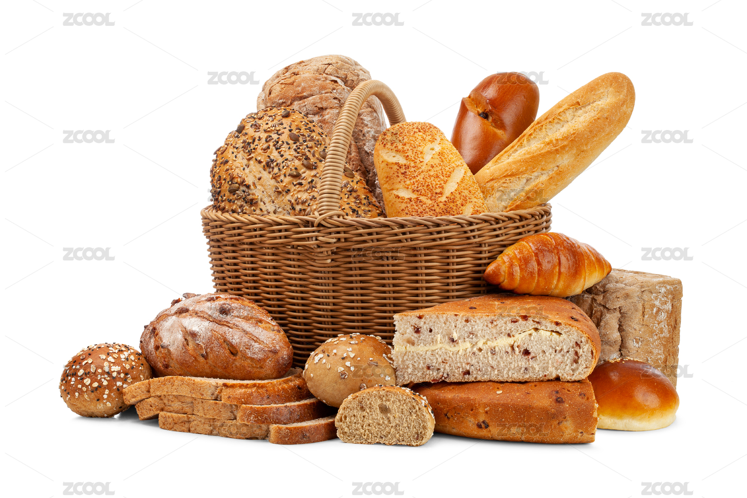 一籃子各種谷物面包